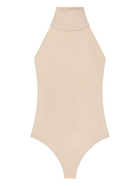 halterneck embroidered bodysuit Highlights - Light pink - Halterneck design - Sleeveless - Embroidered logo Made in Italy Composition Polyamide 100%, Viscose 100% Washing instructions Read Manufacturer Guidelines