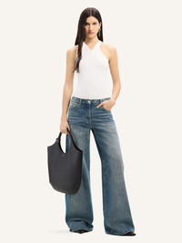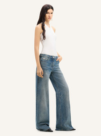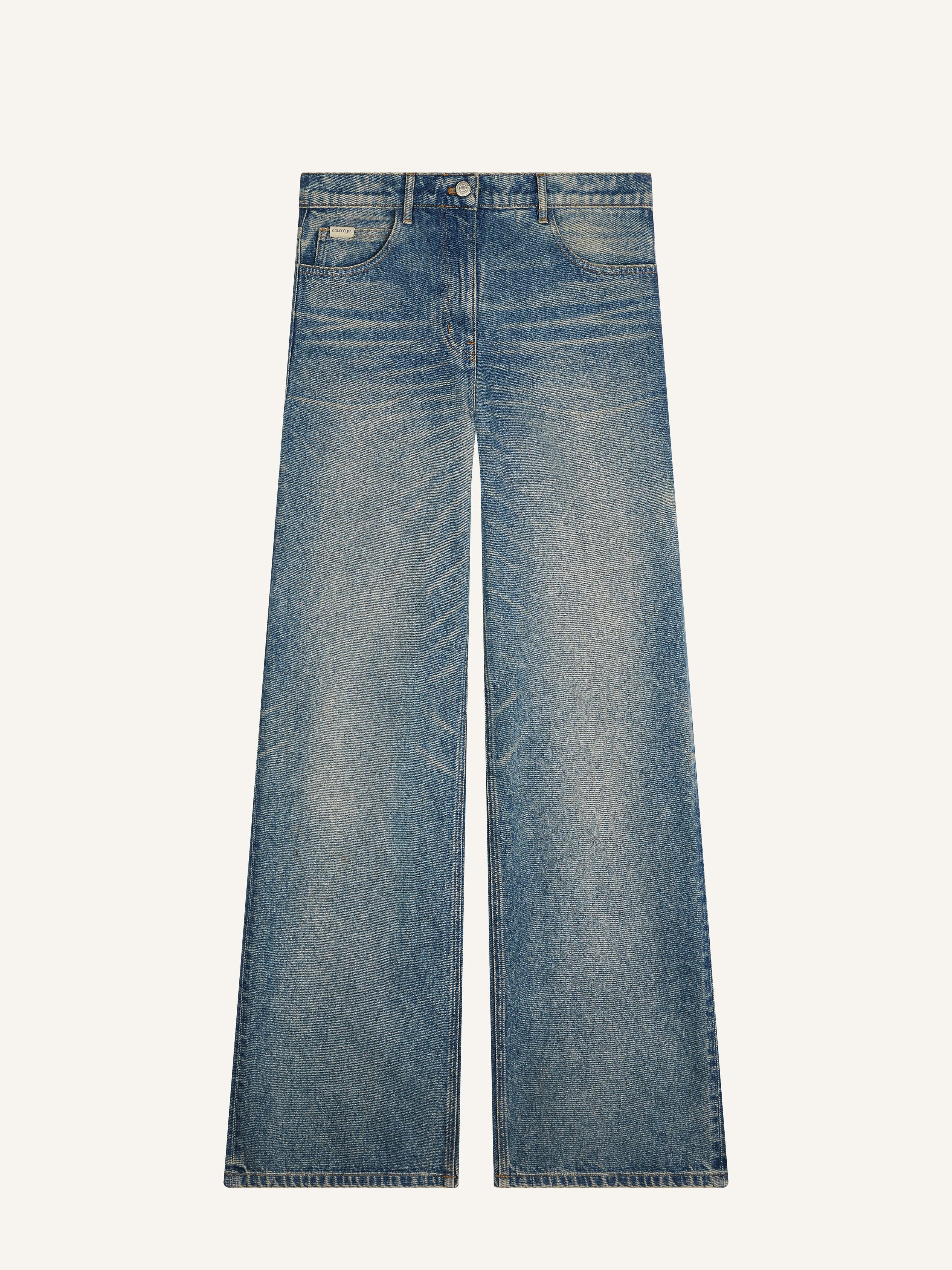 Five-pocket baggy pants with embroidered AC logo on back pocket. The model is 1.78m tall and wears a size 26. DETAILS Composition: 100% cotton Country of Manufacture: IT SKU: 324DPA253DE00337052 Color: Vintage Medium Blue