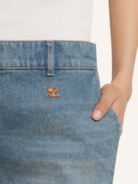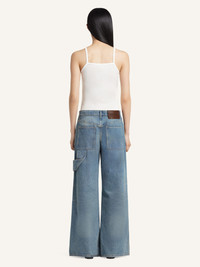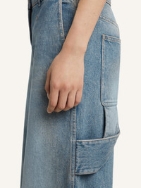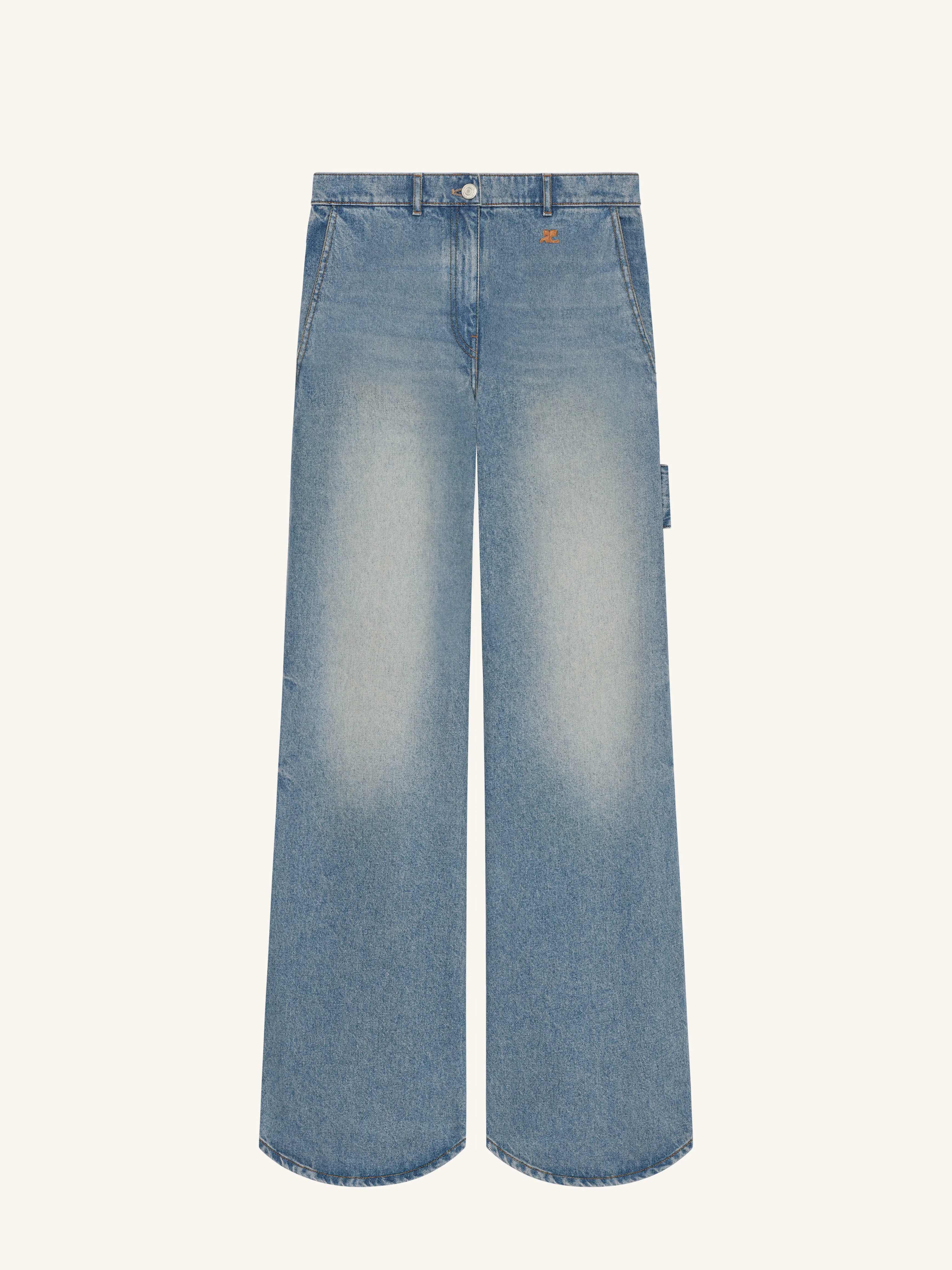 Five-pocket hammer denim baggy pants with hammer buckle detail. Each piece is different; bleaching is done by hand and does not allow for an even fading effect. The model is 1.77m and wears a size 26. DETAILS Composition: 100% cotton Country of Manufacture: FR SKU: 126DPA692DE00587055 Color: Denim blue
