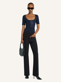 Polywool heritage bootcut pants with welt pockets. DETAILS Composition: 51% polyester, 41% wool, 4% elastane, 4% polyamide Country of Manufacture: RO SKU: 125CPA283PL01709999 Color: Black