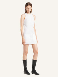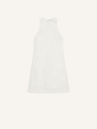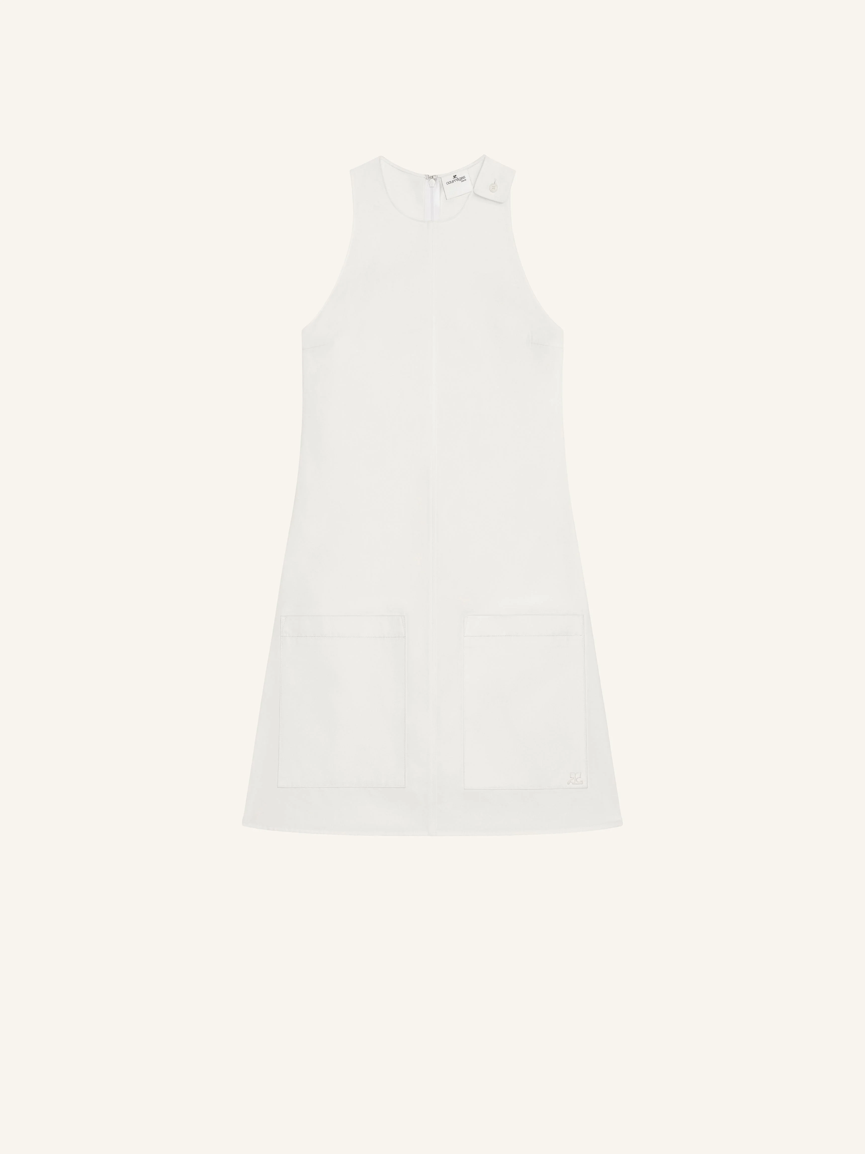 Sleeveless poplin A-line heritage dress with button detail on the shoulder. Two patch pockets on the front with embroidered AC logo and zipped closure at back. The model is 1.79m and wears a size 36. DETAILS Composition: 100% cotton Country of Manufacture: PL SKU: 126CRO770CO01720010 Color: White