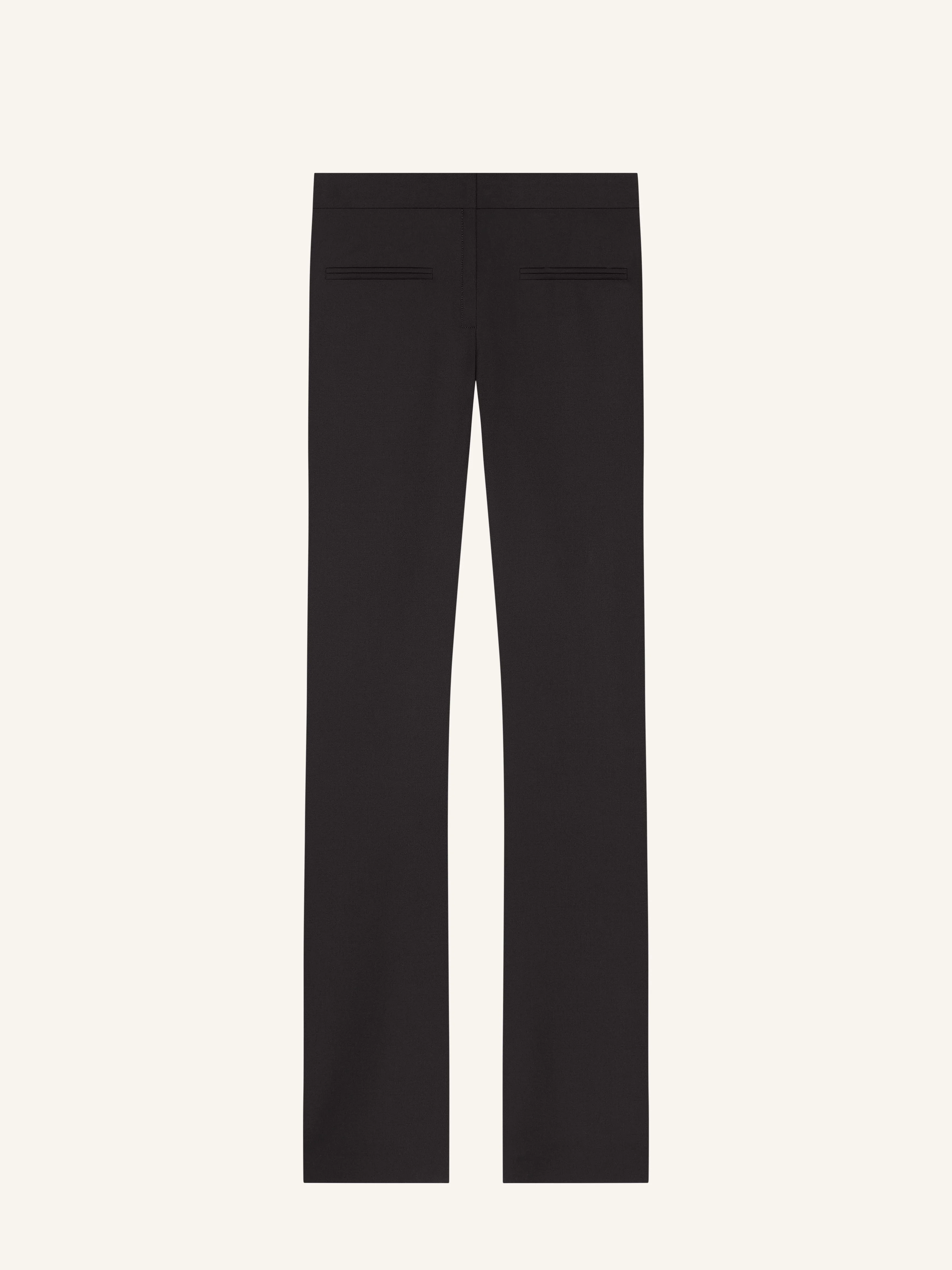Fluid crepe heritage bootcut pants with two front welt pockets. The model is 1.77m tall and wears a size 36. DETAILS Composition: 89% polyester, 11% polyurethane Country of Manufacture: RO SKU: 325CPA427PL01599999 Color: Black