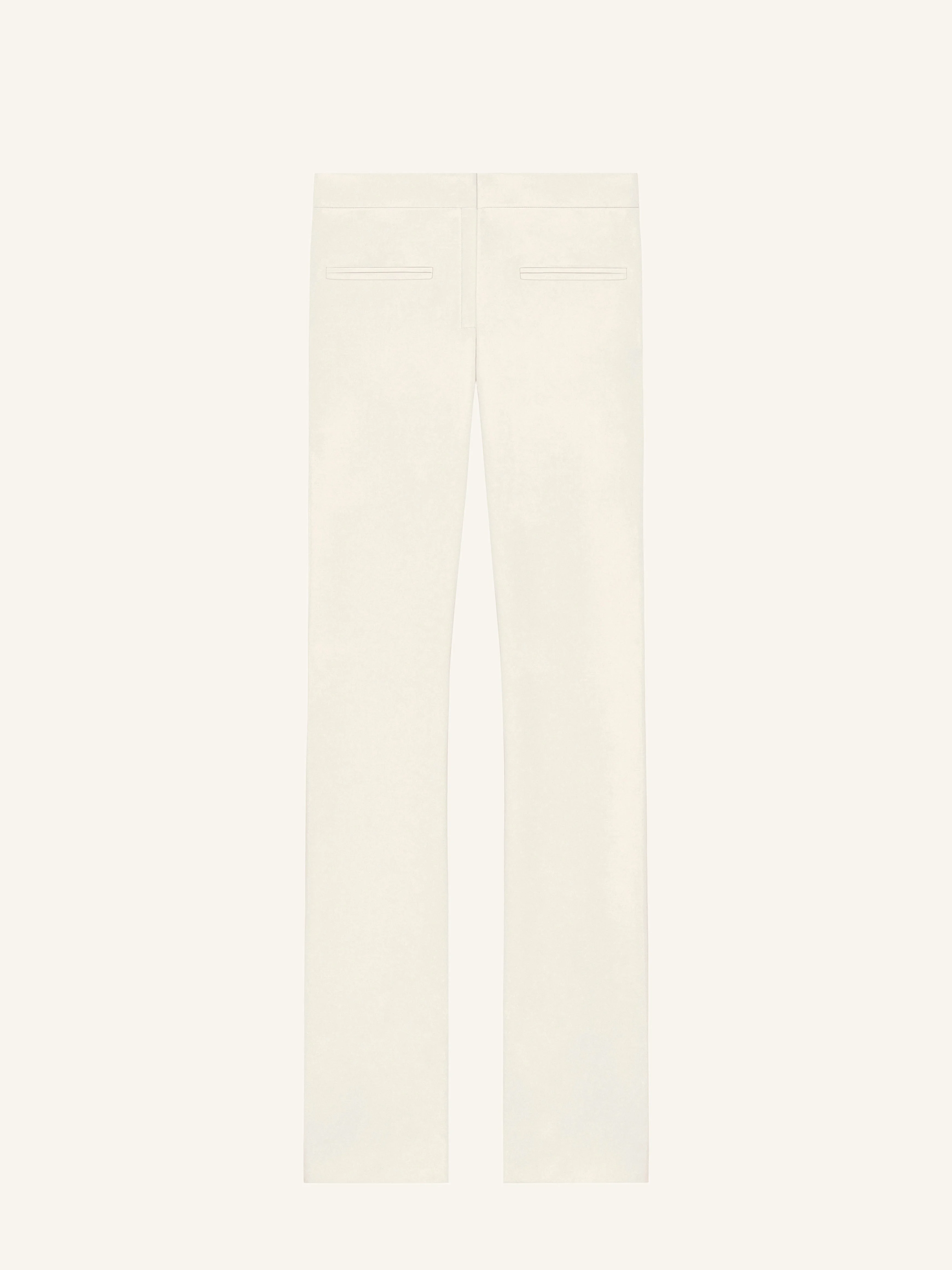 Fluid crepe heritage bootcut pants with two front welt pockets. The model is 1.77m tall and wears a size 36. DETAILS Composition: 89% polyester, 11% polyurethane Country of Manufacture: RO SKU: 325CPA427PL01590079 Color: Natural Beige