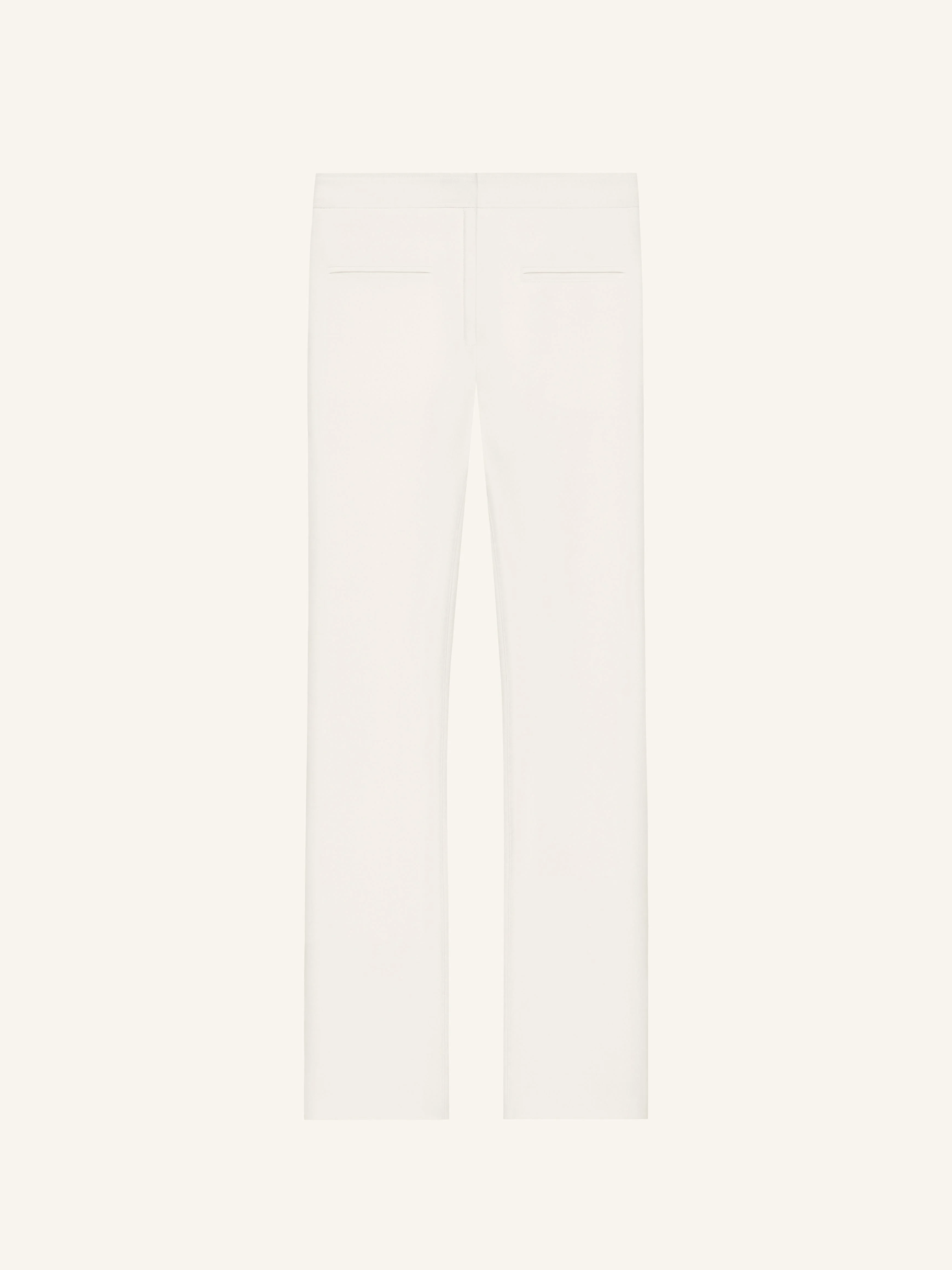 Wool crepe tailored straight heritage pants with two front welt pockets. The model is 1.77m tall and wears a size 36. DETAILS Composition: 45% polyester, 36% wool, 16% polyamide, 3% lyocell Country of Manufacture: RO SKU: 325CPA419WO01430001 Color: Heritage White