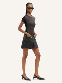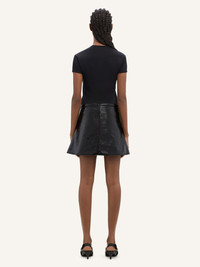 Heritage vinyl mini skirt with welt pockets and zip opening at center front. The model is 1.76m tall and wears a size 36. DETAILS Composition: 88% cotton, 10% polyurethane, 2% elastane Country of Manufacture: PT SKU: 324CJU194VY00149999 Color: Black