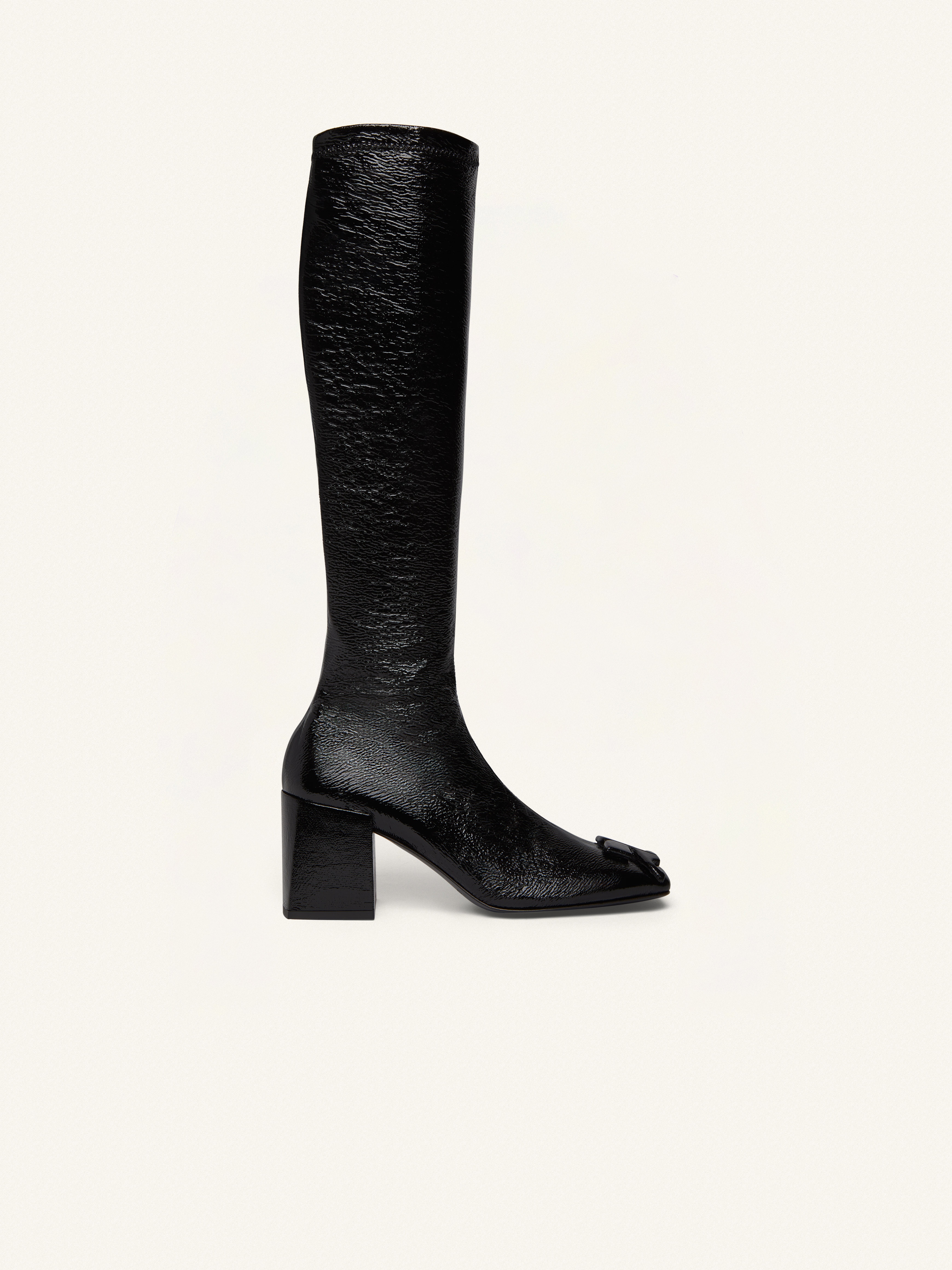 Heritage stretch vinyl boots with square heel and recovered AC logo on the top. DETAILS Composition: 88% Cotton 10% Polyurethane 2% Elastane Country of manufacture: Italy Color: Black Item code: 323SBT002VY0015