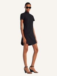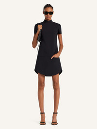 Short-sleeved mockneck wool dress with zipped fastening at back and two front welt pockets. The model is 1.77m tall and wears a size 36. DETAILS Composition: 45% polyester, 36% wool, 16% polyamide, 3% lyocell Country of Manufacture: RS SKU: 325CRO681WO01439999 Color: Black