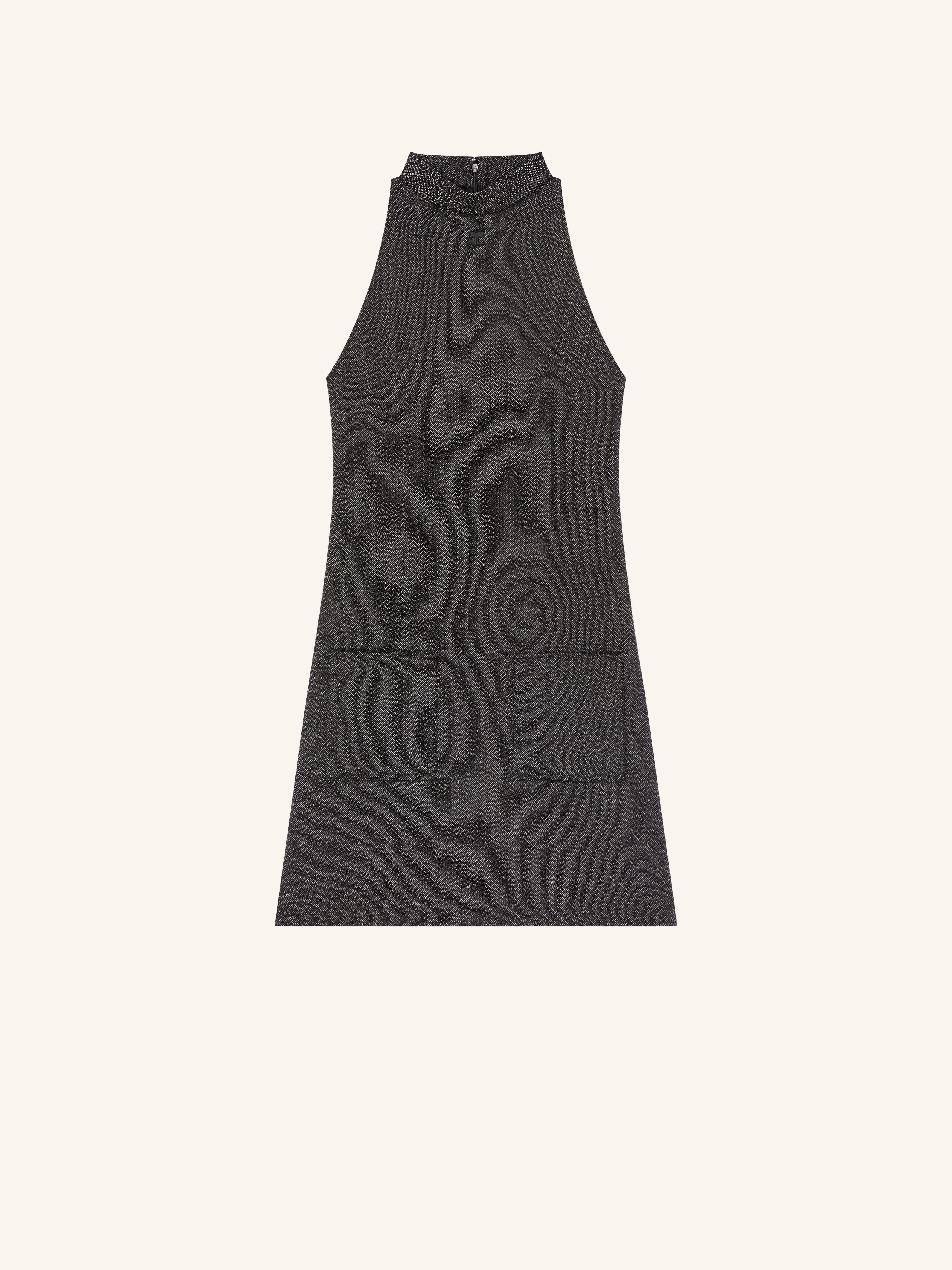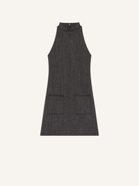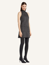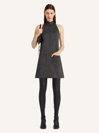 Sleeveless A-line mockneck caviar wool dress with two front welt pockets and embroidered AC logo below neckline. The model is 1.77m tall and wears a size 36. DETAILS Composition: 100% wool Country of Manufacture: RS SKU: 325CRO671WO01449901 Color: Black/Heritage White