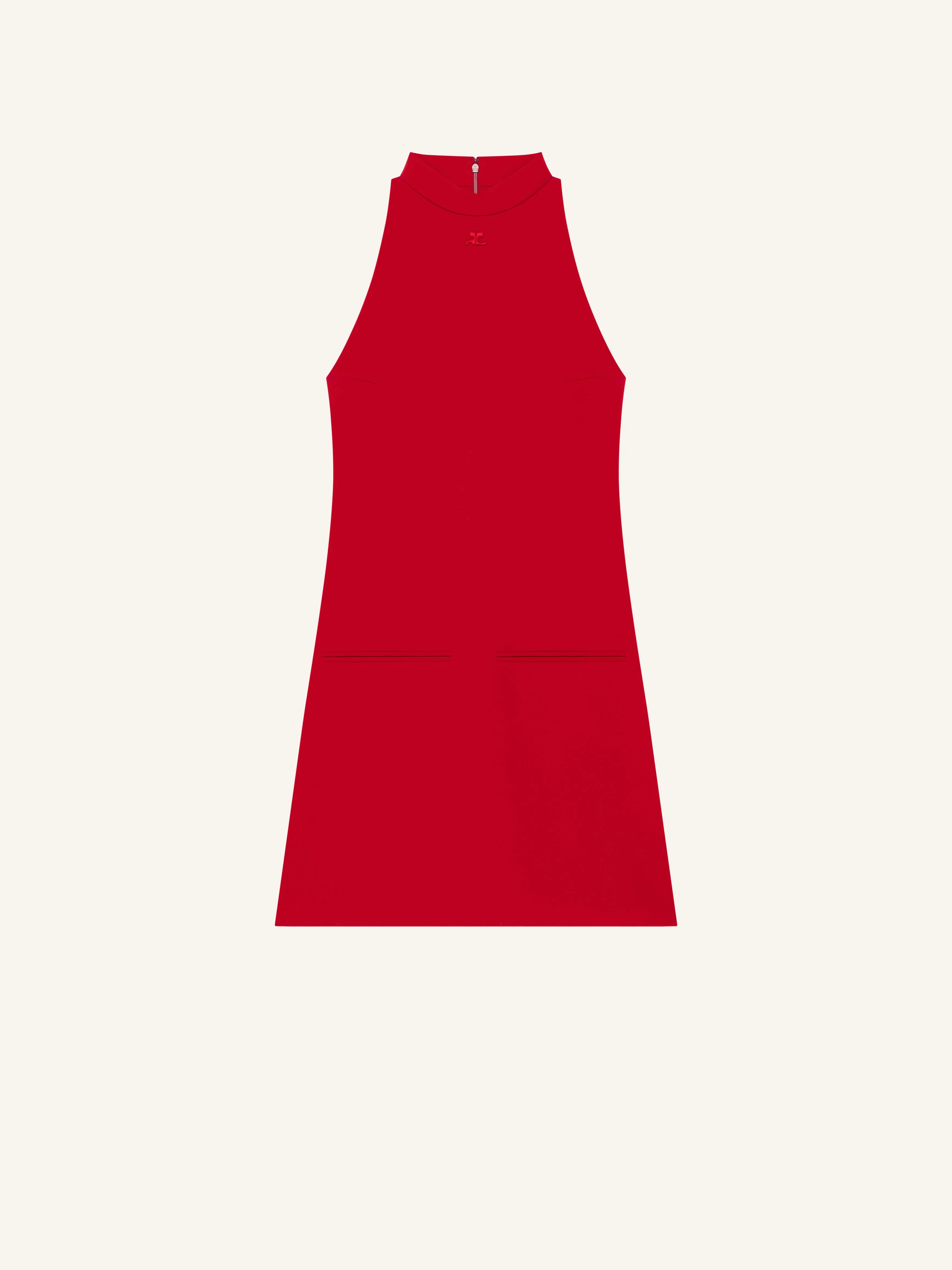 Sleeveless A-line mockneck dress with two front welt pockets and embroidered AC logo below neckline. The model is 1.77m tall and wears a size 36. DETAILS Composition: 89% polyester, 11% polyurethane Country of Manufacture: RS SKU: 325CRO696PL01594015 Color: Ruby