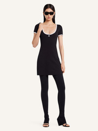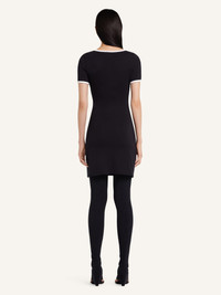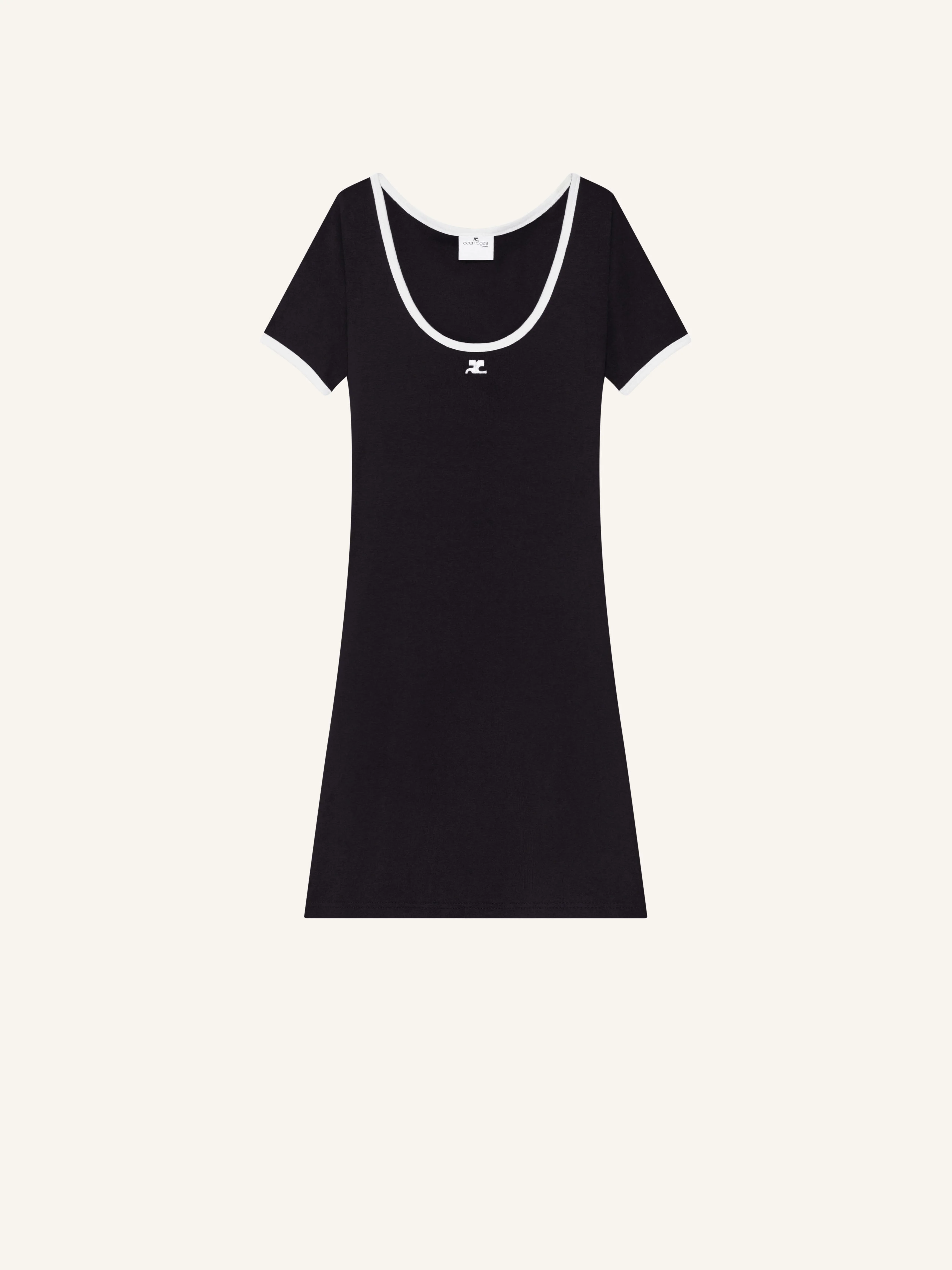 Contrast cotton A-line short sleeved dress with embroidered AC logo below neckline. The model is 1.80m tall and wears a size S. DETAILS Composition: 100% cotton Country of Manufacture: PT SKU: 225JRO600JS02039901 Color: Black/Heritage White