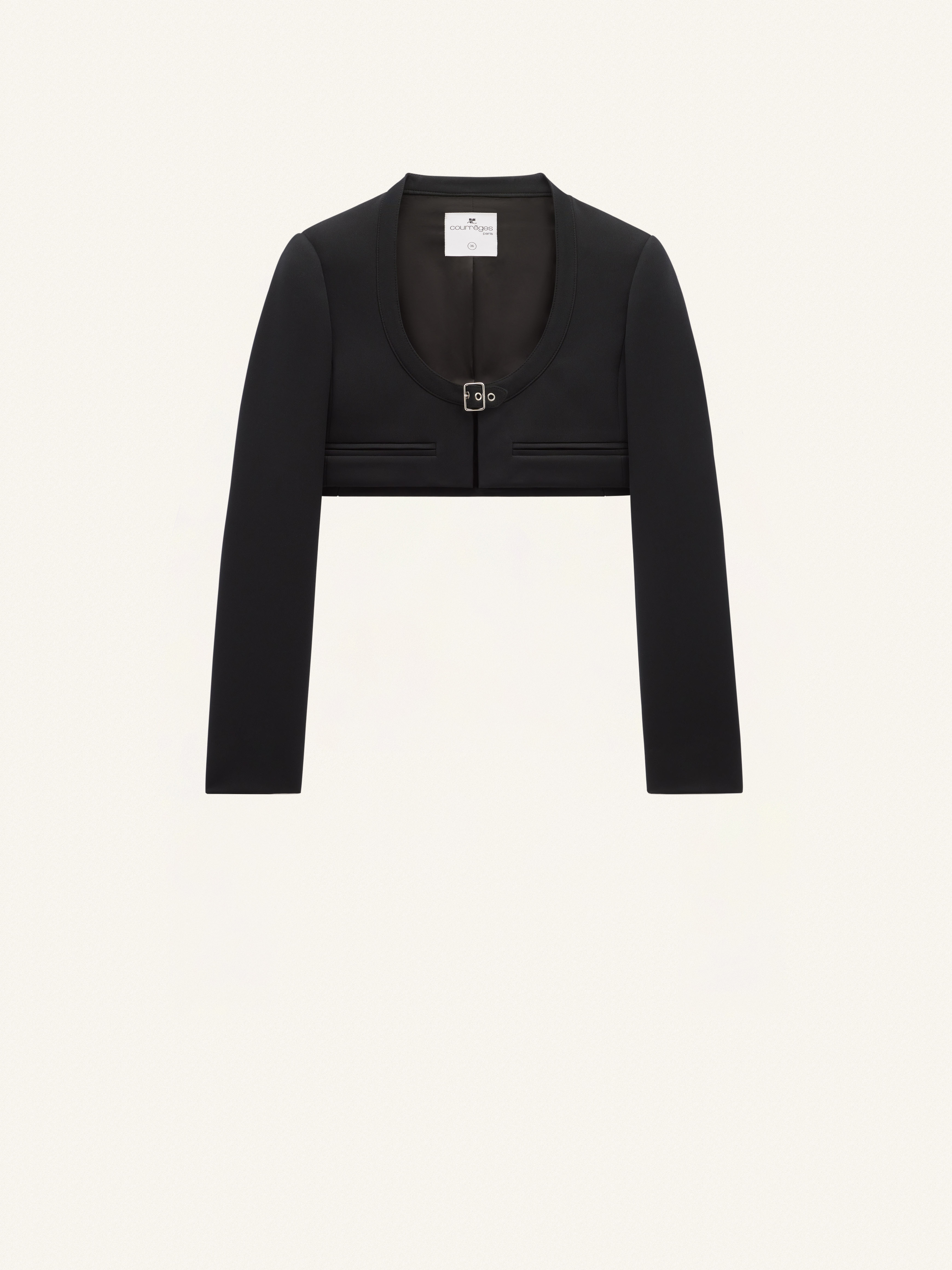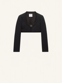 This tailored cropped jacket has a large round neckline and two welt pockets on the front. DETAILS Composition : 83% Polyester, 17% Acetate Pays de fabrication : Serbie Couleur : Noir Code Article : 124CBL148PL0007