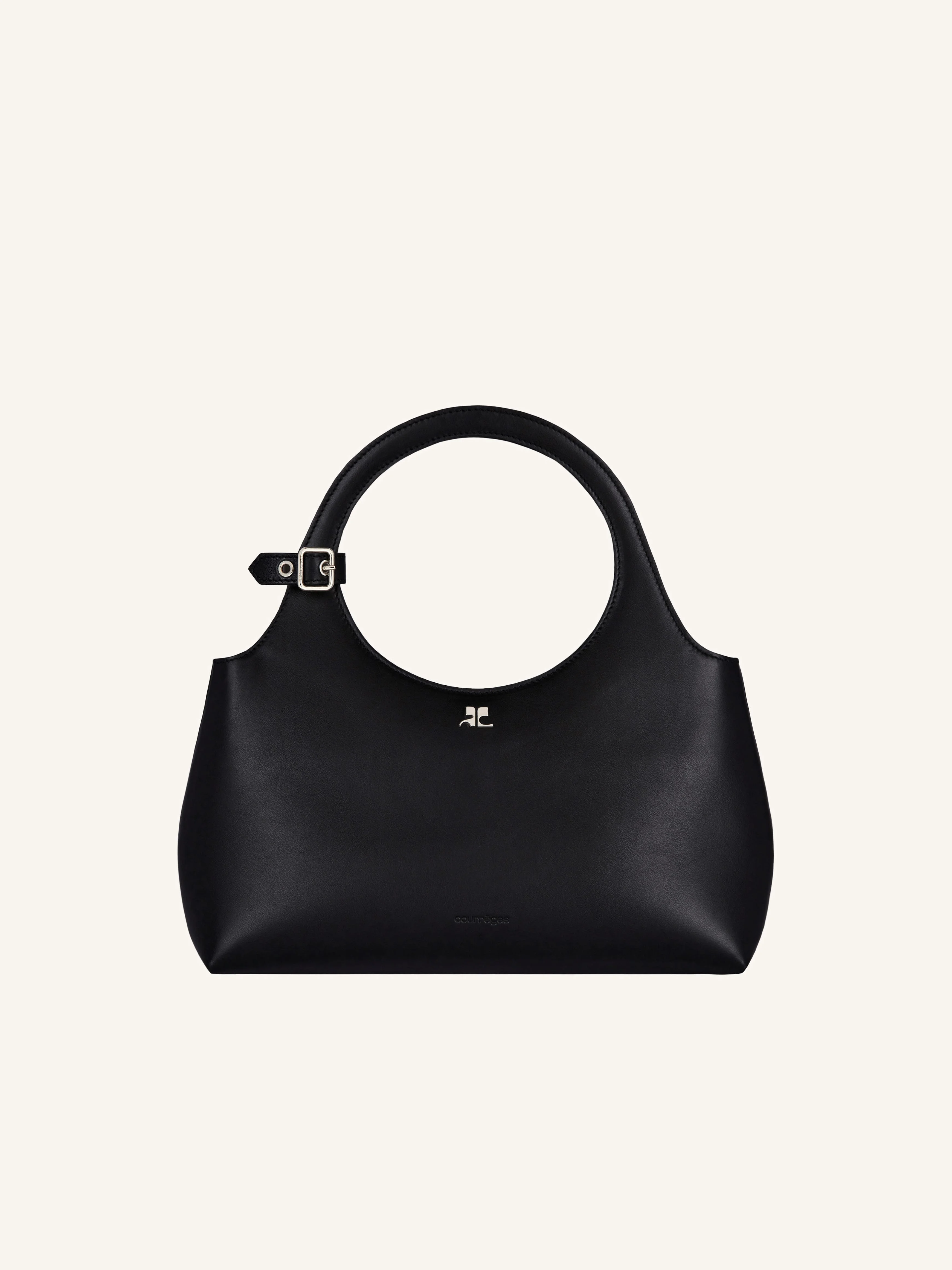 Holy Day smooth calf leather. Zipped closure and metallic AC logo. Embossed "Courreges" logo on front. Buckle detail on handles and interior pocket. Adjustable and removable shoulder strap. Length: 26 cm Height: 28 cm Opening width: 23 cm Strap length: 120 cm DETAILS Composition: 100% calf leather Country of Manufacture: IT SKU: 125GSA159CR00659999 Color: Black