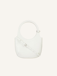 Smooth leather Holy bag with magnetic closure and metallic AC logo. Buckle detail on handles and interior pocket. Adjustable and removable shoulder strap. Embossed Courreges logo on front. Length: 19 cm Height: 34 cm Width: 24 cm DETAILS Composition: 100% calf leather Country of Manufacture: IT SKU: 224GSA102CR00650011 Color: Off White