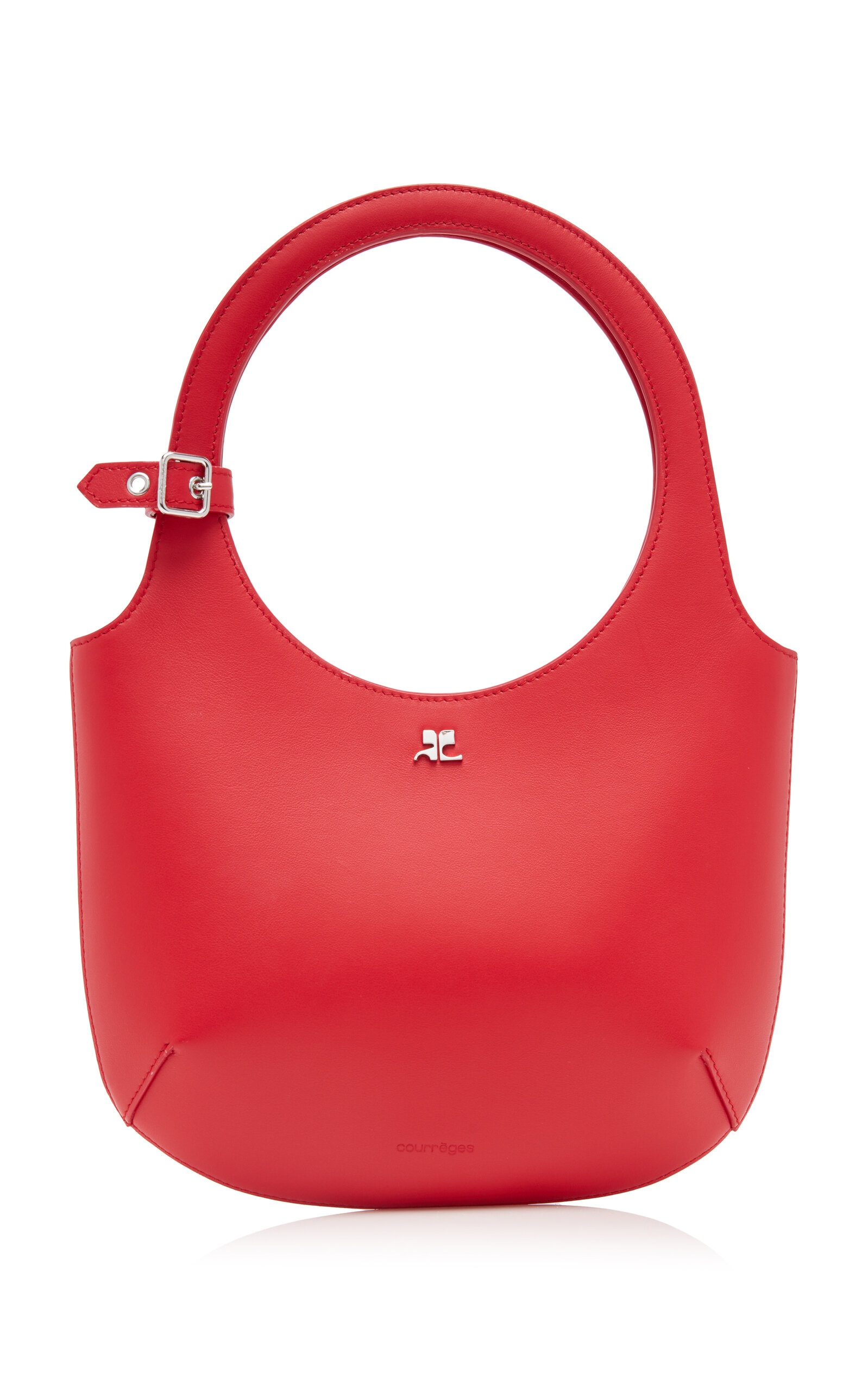 After 12 years alongside Nicolas Ghesquiere and a brief stint at Dior with Raf Simons, Courreges artistic director Nicolas Di Felice has brought the renowned French fashion house back to life. The 'Holy' bag is crafted from full-grained leather into a structured silhouette detailed with a buckle along its top handle and an embossed logo along the front. Style it with or without the adjustable shoulder strap. PRODUCT DETAILS - Snap button closure - Composition: 100% leather - Designer color: Ruby - Made in Italy