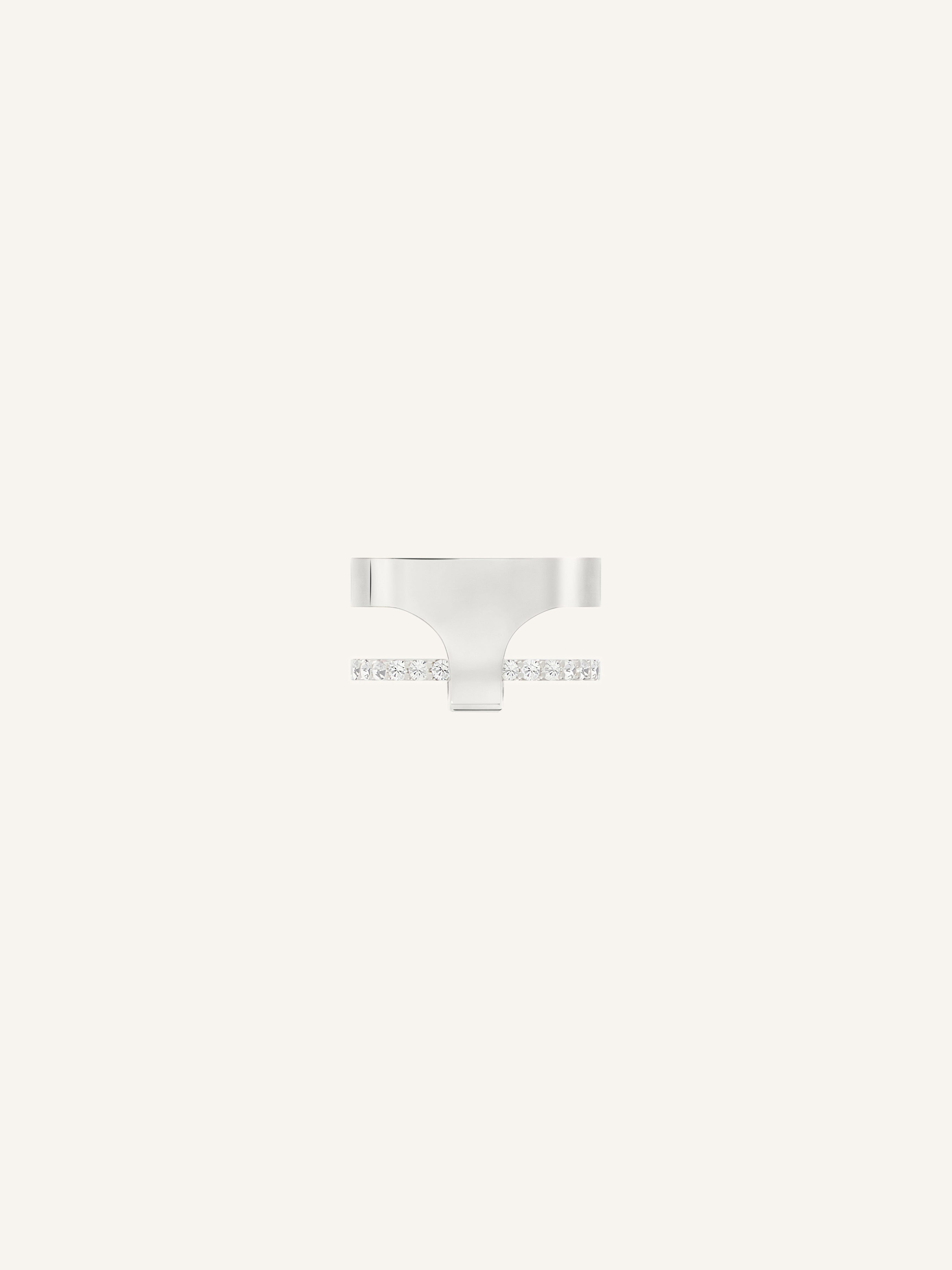 Holy silver brass double wear ring with zircon and "Courreges" logo engraved inside. Width: 0.5 cm DETAILS Composition: 100% brass Country of Manufacture: IT SKU: 125BBG031LA00019000 Color: Silver