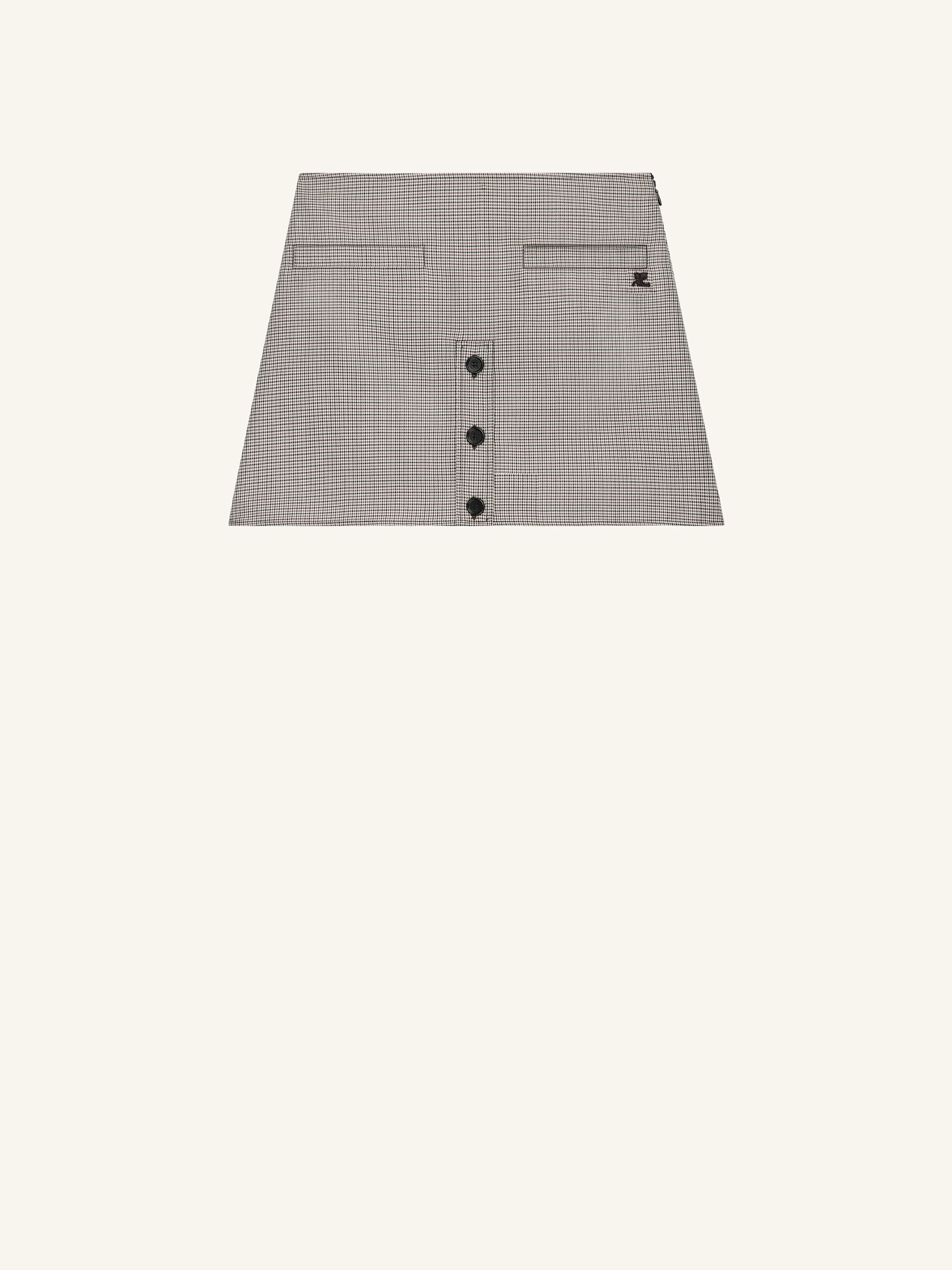 Mini houndstooth wool skirt with buttoned slit at the front and two welt pockets. Embroidered AC logo on the side. The model is 1.80m and wears a size 36. DETAILS Composition: 52% silk , 48% polyester Country of Manufacture: PT SKU: 126CJU330WO01459925 Color: Natural / Red / Black