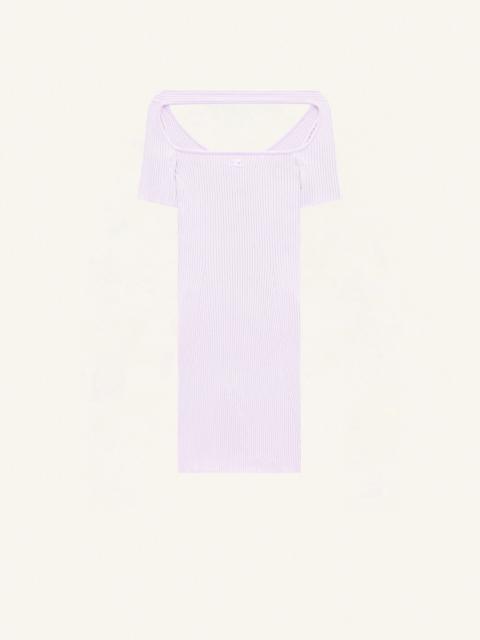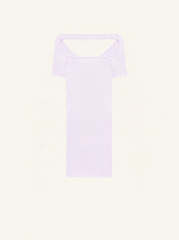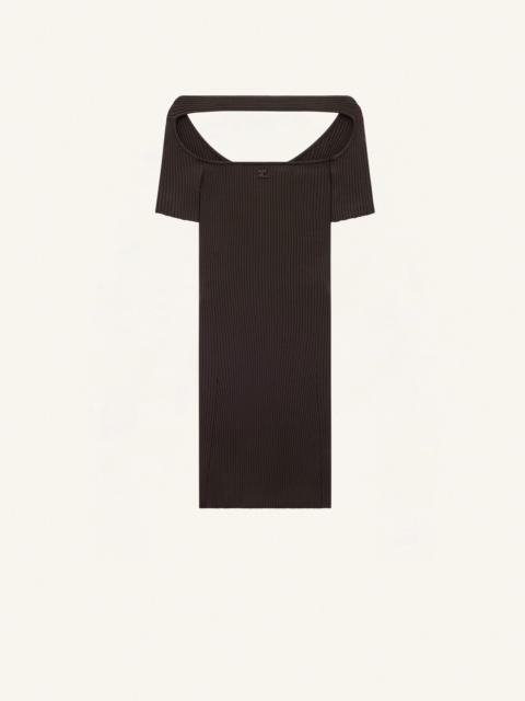 Mini ribbed knit dress. Boat neckline and bare shoulders. Embroidered AC logo on front. Short sleeves. The model is 1m75 tall and wears a S size. DETAILS Composition: 70% viscose, 30% polyester Country of Manufacture: BG SKU: 224MRO416FI00010077 Color: Mist