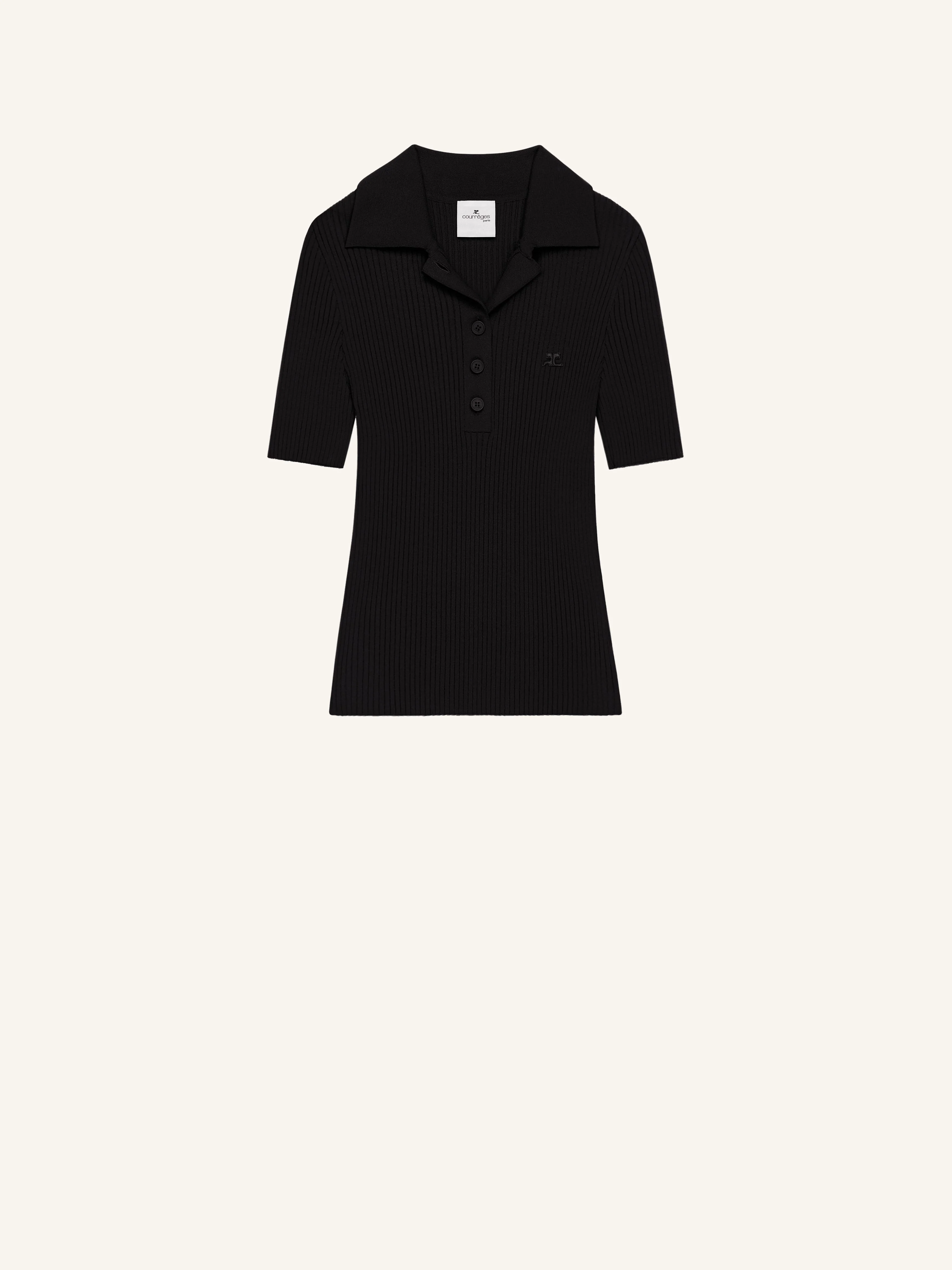 Short-sleeved rib-knit polo shirt with buttoned neckline. AC logo on chest. The model is 1.76m tall and wears a size S. DETAILS Composition: 70% viscose, 30% polyester Country of Manufacture: BG SKU: VESMPO029FI00019999 Color: Black