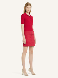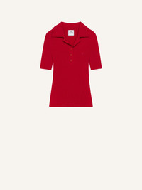 Rib-knit polo shirt with short sleeves and buttoned neckline. AC logo on chest. The model is 1.78m tall and wears a size S. DETAILS Composition: 70% viscose, 30% polyester Country of Manufacture: BG SKU: 125MPO029FI00014015 Color: Ruby