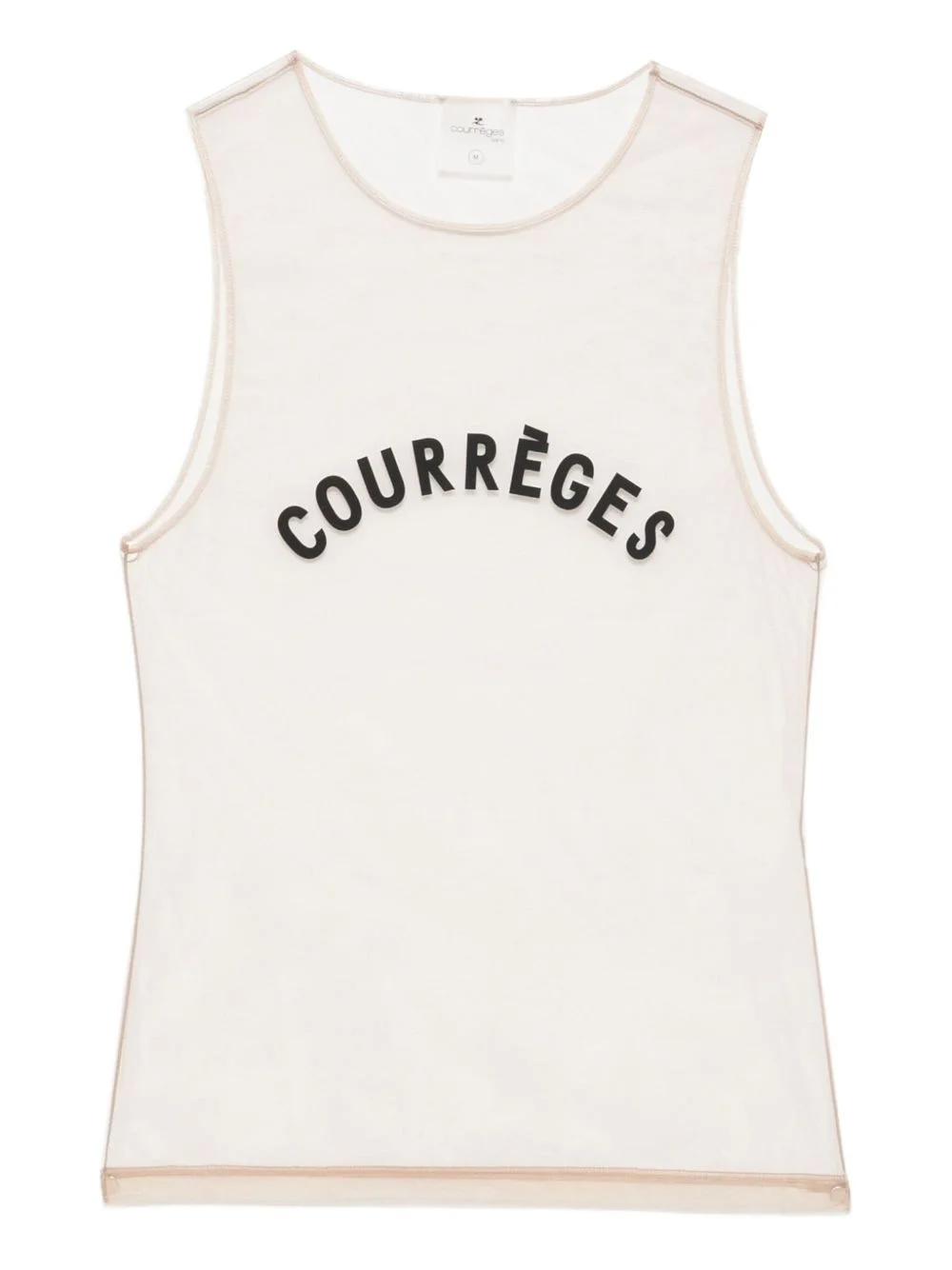 logo-print tulle top Highlights - Sand - Tulle fabric - Sleeveless - Scoop neck - Logo print Imported Composition Polyamide 79%, Elastane 21% SIZE & FIT Model measurements Height 5 ft 10 in(1.77 m) Bust/Chest 32.28 in(82 cm) Hips 35.03 in(89 cm) Waist 25.19 in(64 cm) Washing instructions Dry Clean Only