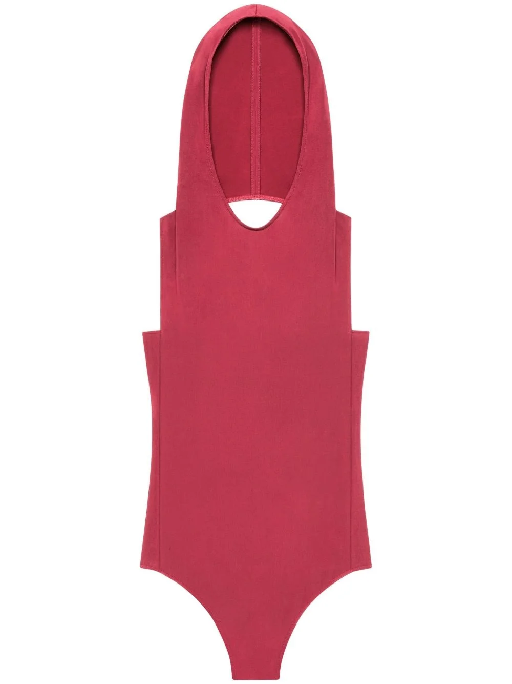 Illusion hooded bodysuit Highlights - Ruby red - Slouchy hood - Open back - Sleeveless - Just a reminder that this piece must be tried on over your own garments. Made in France Composition Polyester 89%, Polyurethane 11% Washing instructions Read Manufacturer Guidelines