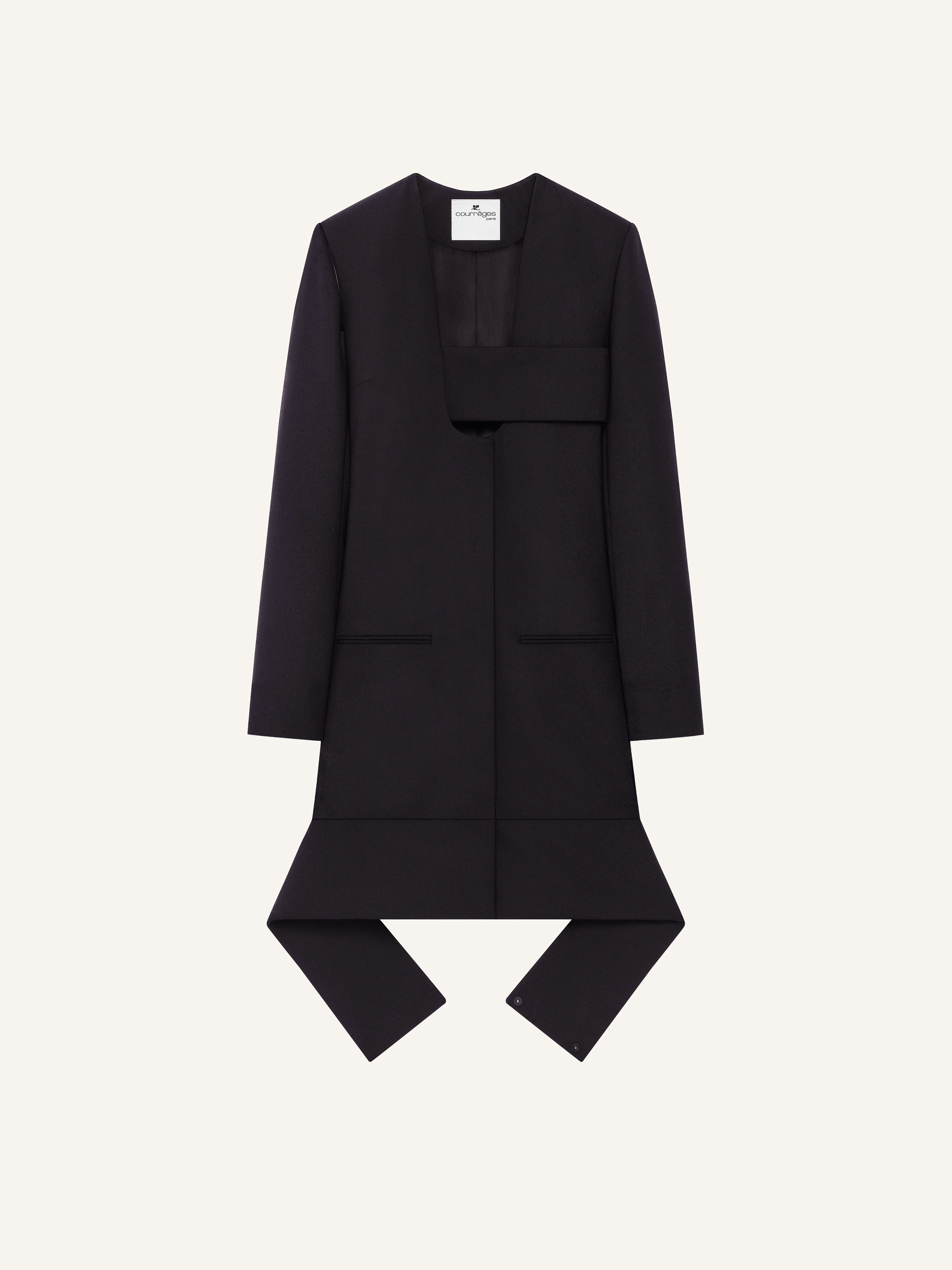Mid-length polywool coat with front band and half belt. Concealed buttons at front. The model is 1.75m tall and wears a size 36. DETAILS Composition: 51% polyester , 41% wool , 8% other fabrics Country of Manufacture: SK SKU: 225CMA212PL01709999 Color: Black