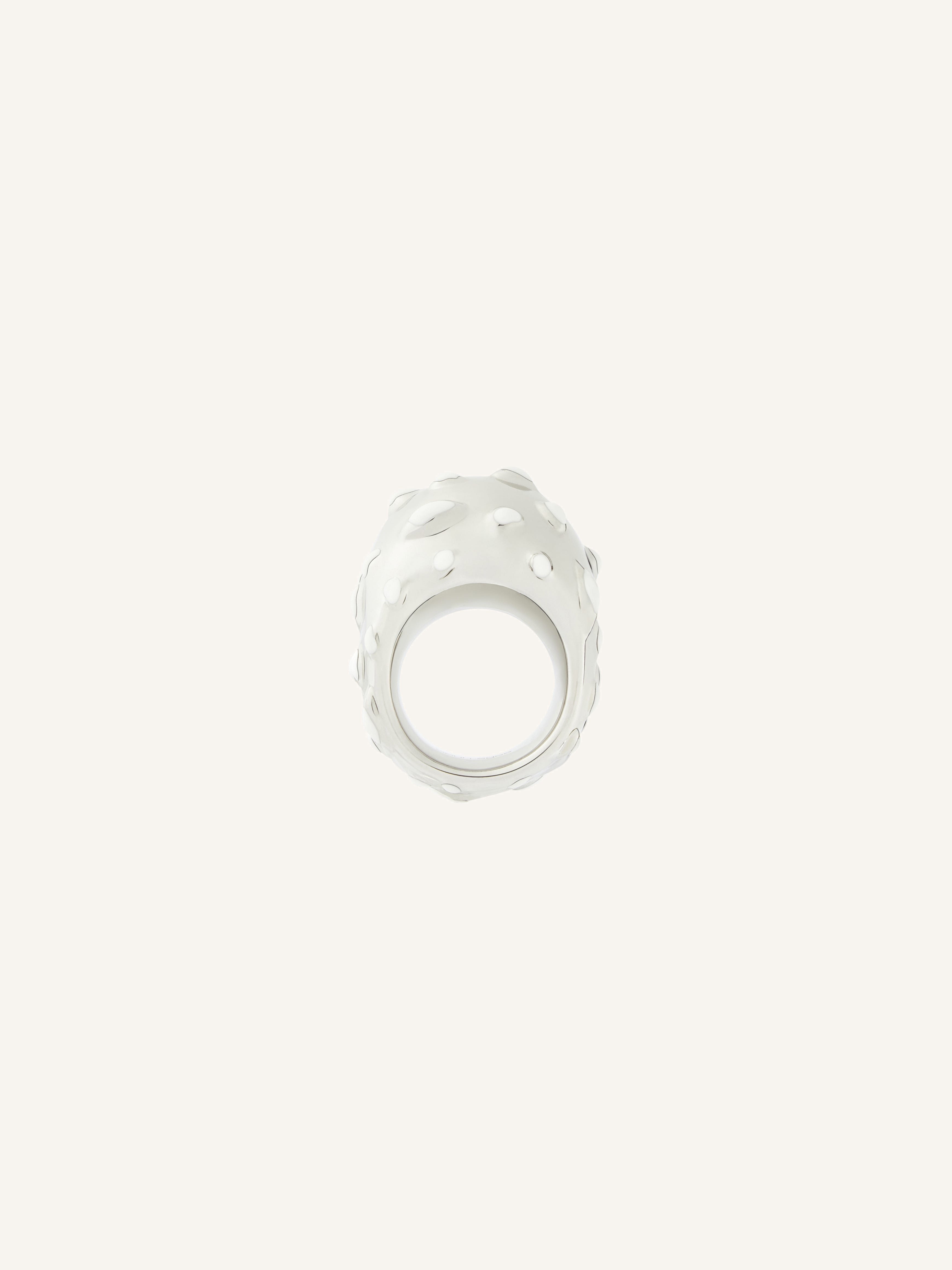 Silver-plated brass and white enameled ring. Courreges logo engraved inside. DETAILS Composition: 100% brass Country of Manufacture: IT SKU: 225BBG035LA0001M317 Color: Silver/ White Heritage
