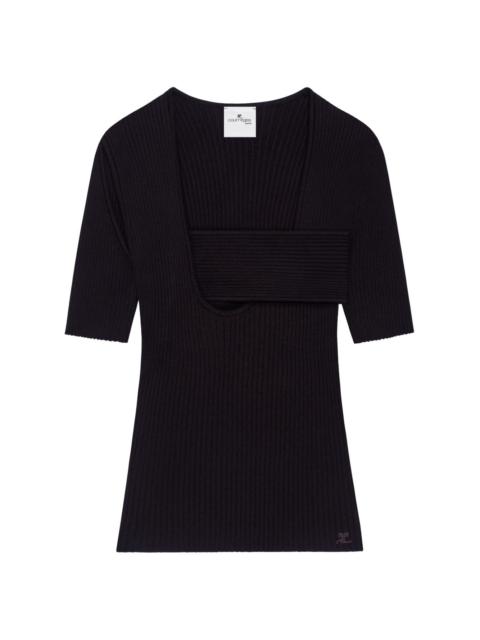 Infinity jumper Highlights - Teal blue - Pull-on style - U-neck - Fine ribbed - Cut-out detailing Imported Composition Viscose 70%, Polyester 30%