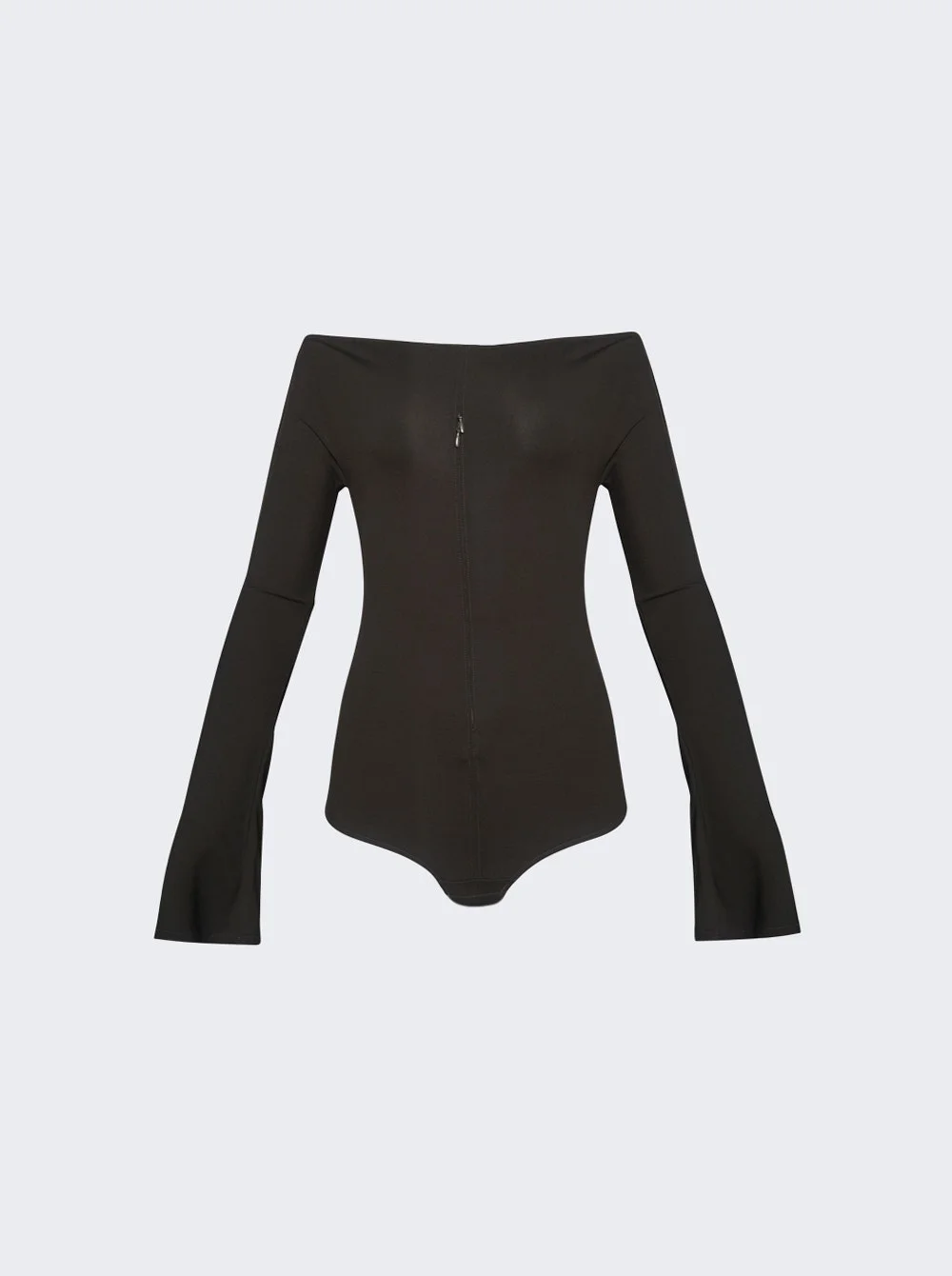 Drop Zipped Crepe Jersey Bodysuit Mud Brown