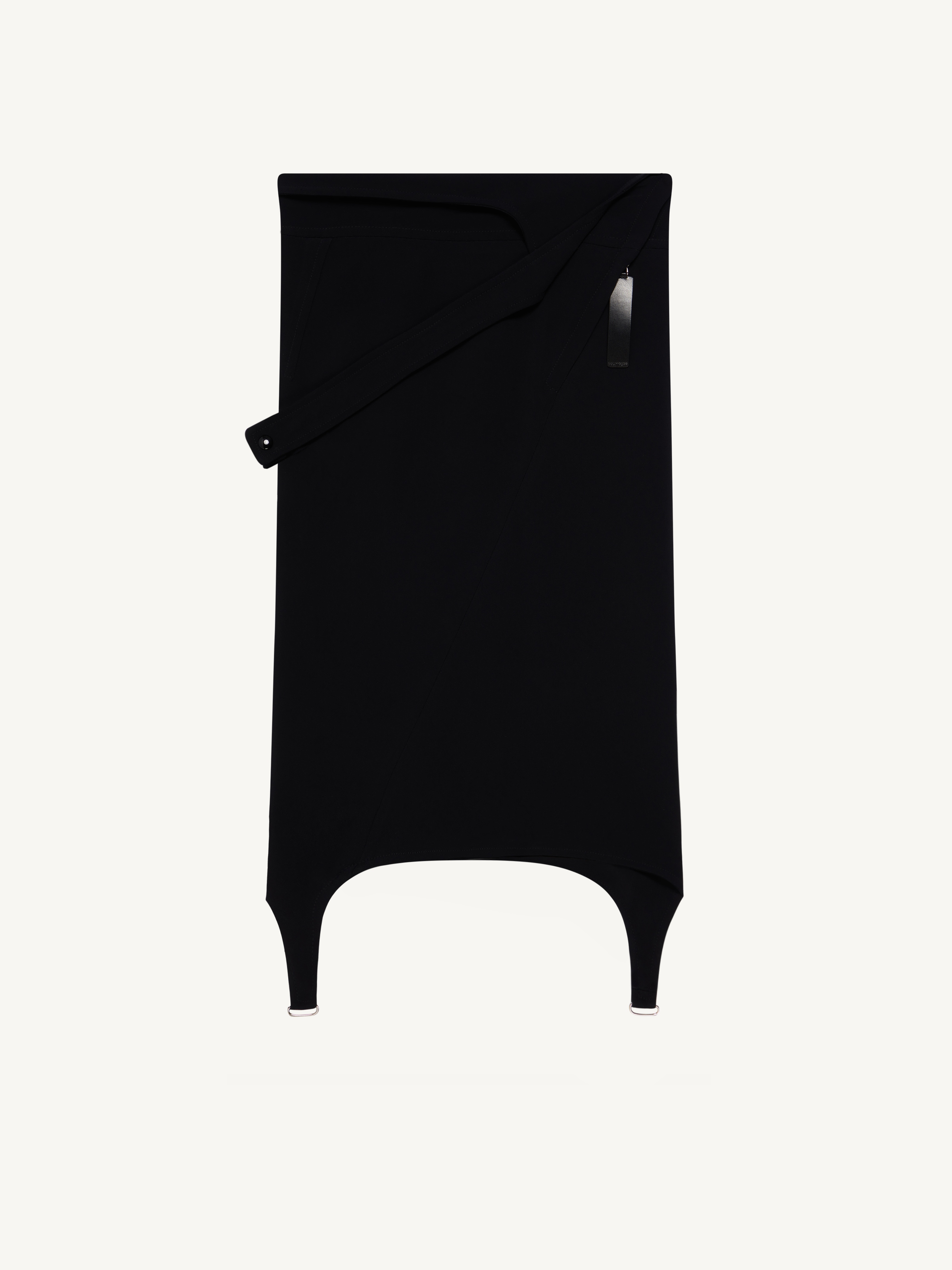 Midi lenght crepe skirt with a folded strap effect, metallic suspenders and zipper. DETAILS Details: 98% viscose 2% elasthane Country of manufacture: Italy Color: Noir Item code: 223CJU087VI00139999