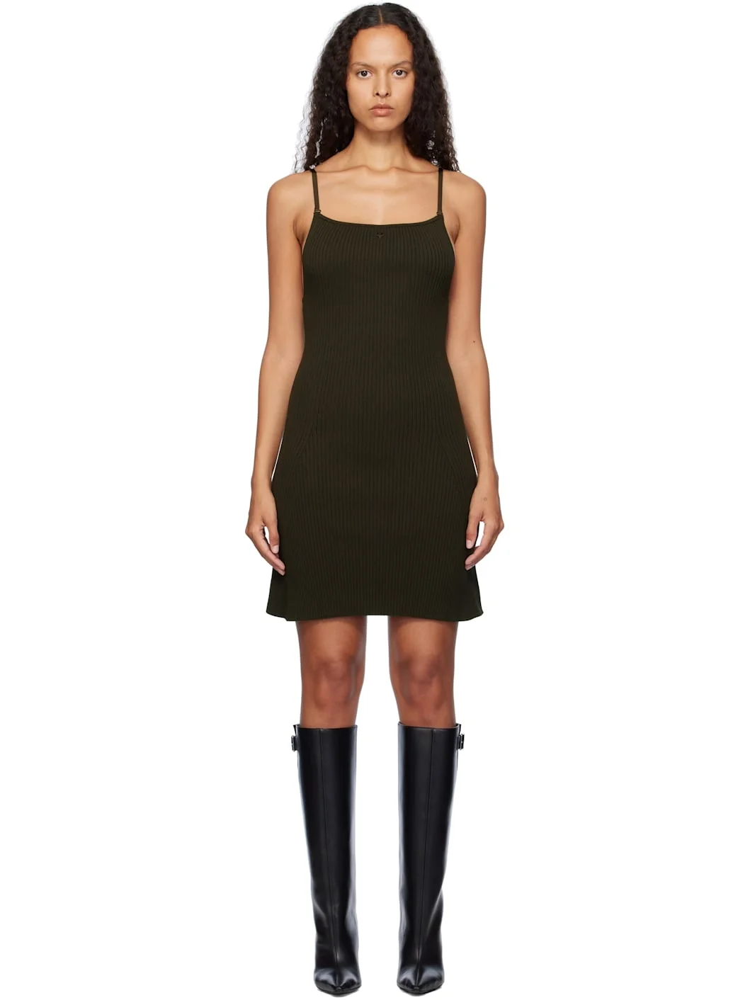 Rib-knit viscose-blend minidress. · Square neck · Embroidered logo patch at chest · Elasticized adjustable shoulder straps · Low back Supplier color: Mud brown 70% viscose, 30% polyester. Made in Portugal 242783F052003