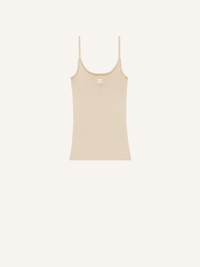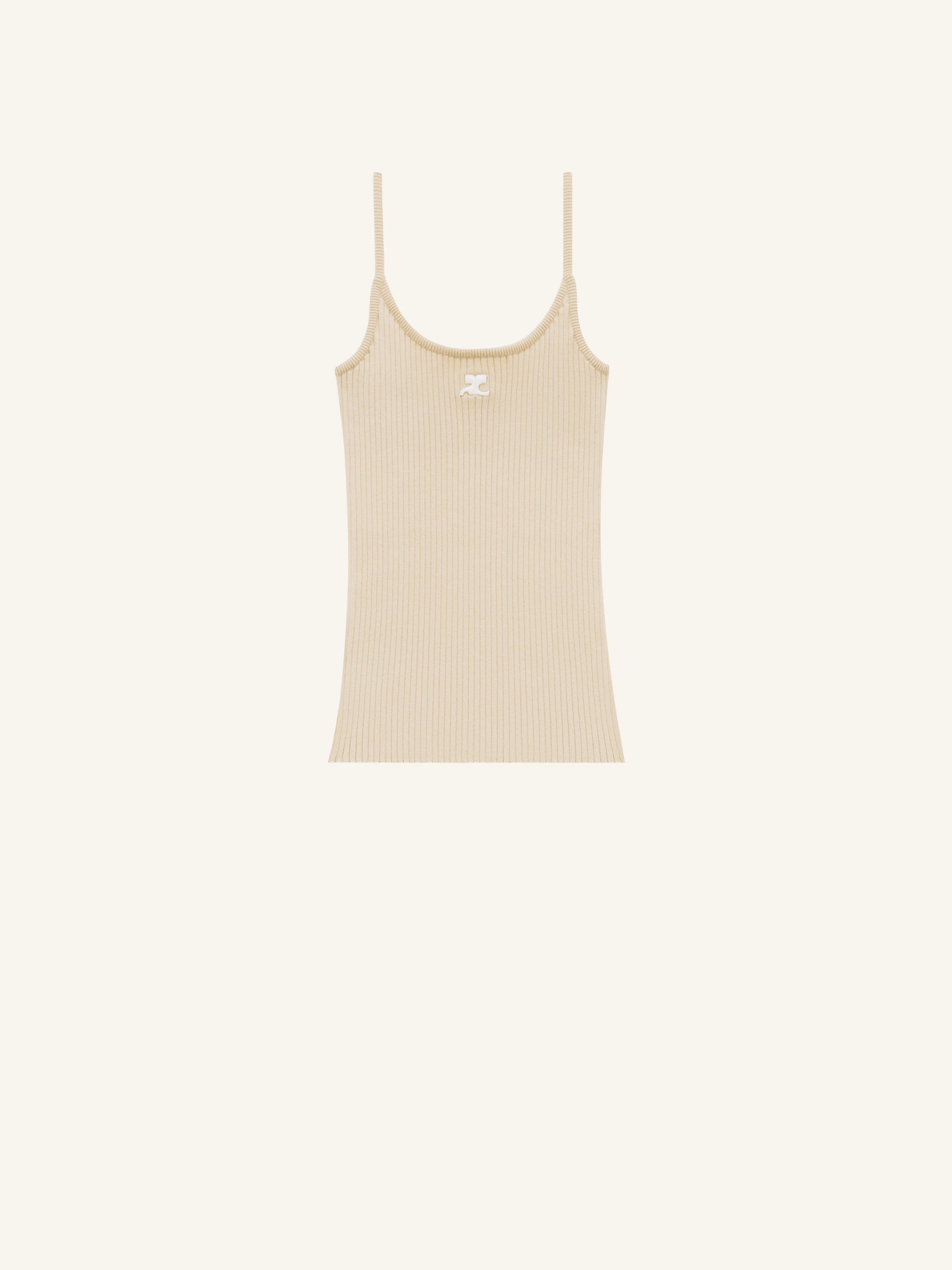 New in the Reeditions collection, Courrèges offers a tank top that uses the emblematic codes of the house's archives. DETAILS Composition: 70% Viscose 30% Polyester Country of manufacture: Bulgaria Color : Sand Item Code :PERMDE012FI00011007