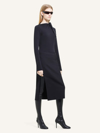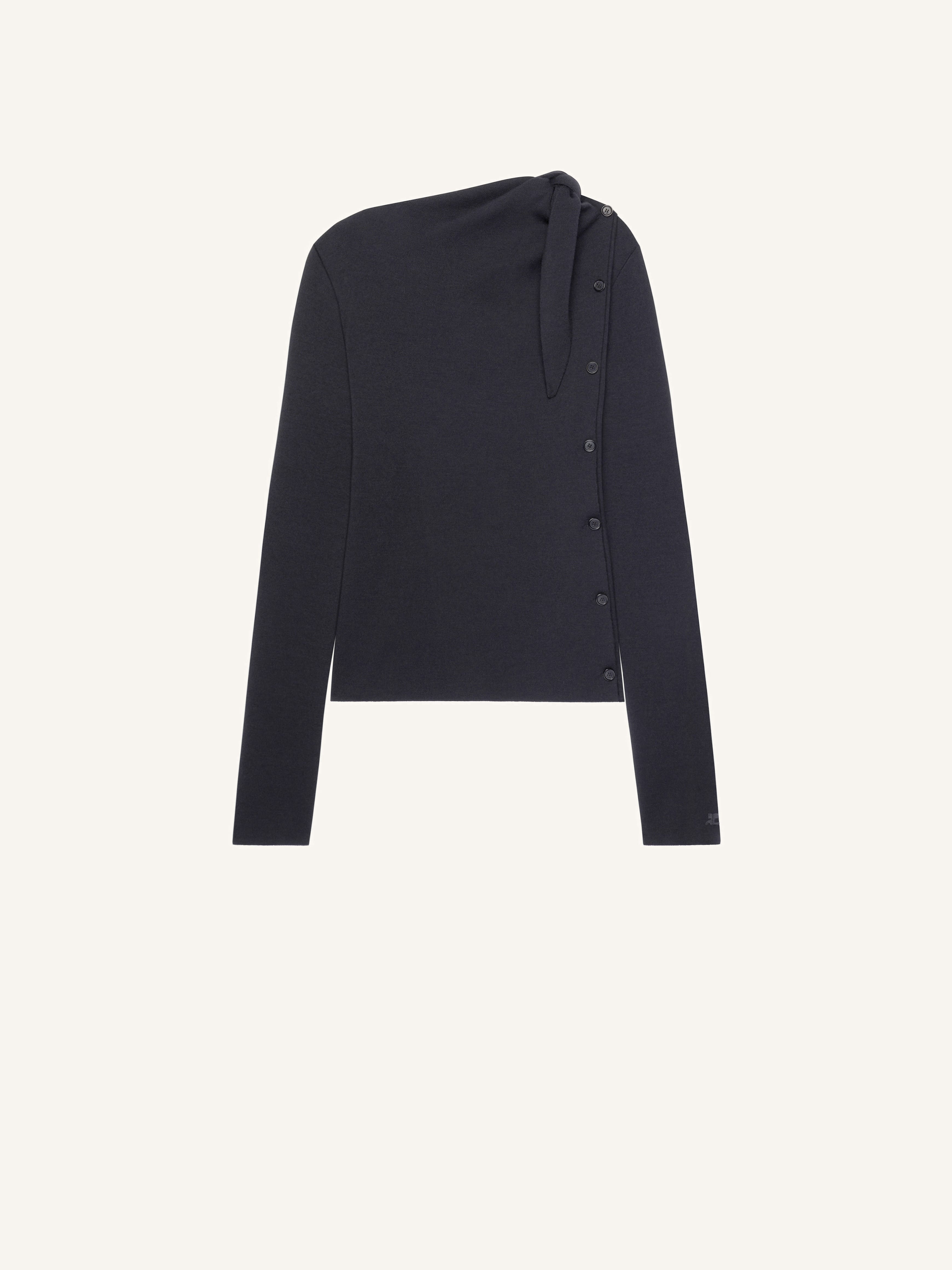Fitted cardigan with knotted collar and long sleeves. Front button collar. The model is 1.78m tall and wears a size S. DETAILS Composition: 100% virgin wool Country of Manufacture: IT SKU: 424MGI023FI00609999 Color: Black