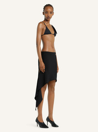 Asymmetrical skirt with tied scarf on the hip and side slit. The model is 1.75m tall and wears a size 36. DETAILS Composition: 100% polyester Country of Manufacture: IT SKU: 125CJU224PL01479999 Color: Black