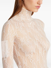 lace turtleneck top Highlights - White - Floral lace pattern - High neckline - Long sleeves - Zip fastening at the back Imported Composition Polyamide 90%, Elastane 10% Washing instructions Read Manufacturer Guidelines