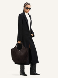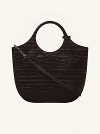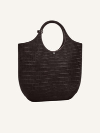 Large Croco stamped Holy bag with magnetic closure and metallic AC logo. Embossed Courreges logo on front. Buckle detail on handles. One zipped pocket and two patch pockets inside. Adjustable and removable shoulder strap. Height: 53 cm Width: 48 cm DETAILS Composition: 100% embossed cow leather Country of Manufacture: IT SKU: 224GSA103CR00601146 Color: Bark