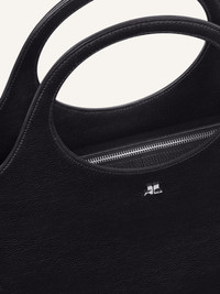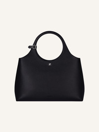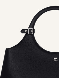 Large grained calf leather Holy Day bag. Zipped closure and metallic AC logo. Embossed "Courreges" logo on front. Buckle detail on handles. One zipped pocket and one patch pockets inside. Adjustable and removable shoulder strap. Length: 35 cm Height: 38,5 cm Opening width: 30 cm Strap length: 120 cm DETAILS Composition: 100% cow leather Country of Manufacture: IT SKU: 325GSA164CV00169999 Color: Black