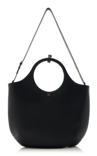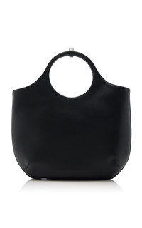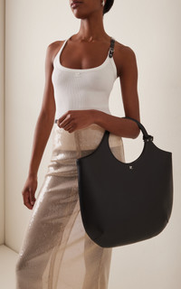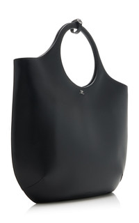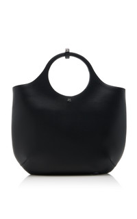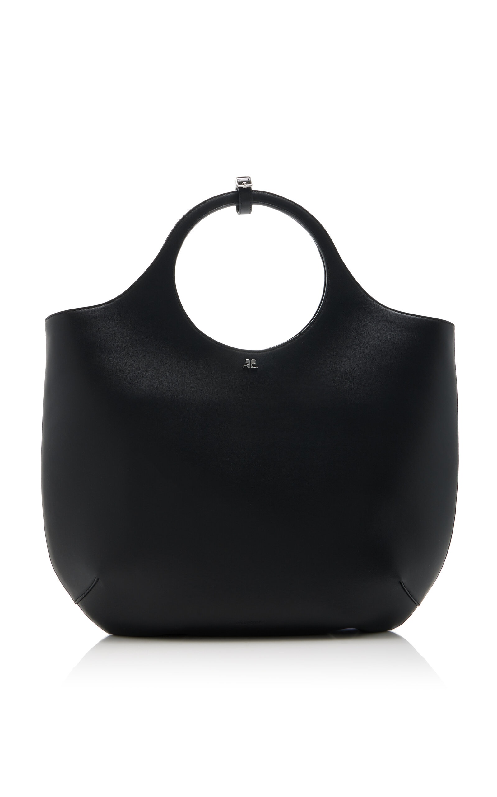 After 12 years alongside Nicolas Ghesquière and a brief stint at Dior with Raf Simons, Courrèges artistic director Nicolas Di Felice has brought the renowned French fashion house back to life. The 'Holy' bag is crafted from smooth leather into a structured silhouette detailed with a buckle along its top handle and an embossed logo along the front. This large iteration is has a generous amount of space. Style it with or without the adjustable shoulder strap. PRODUCT DETAILS - Snap button closure - Composition: 100% calfskin leather - Imported