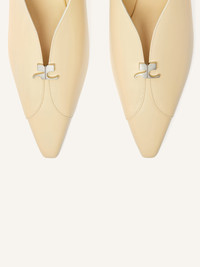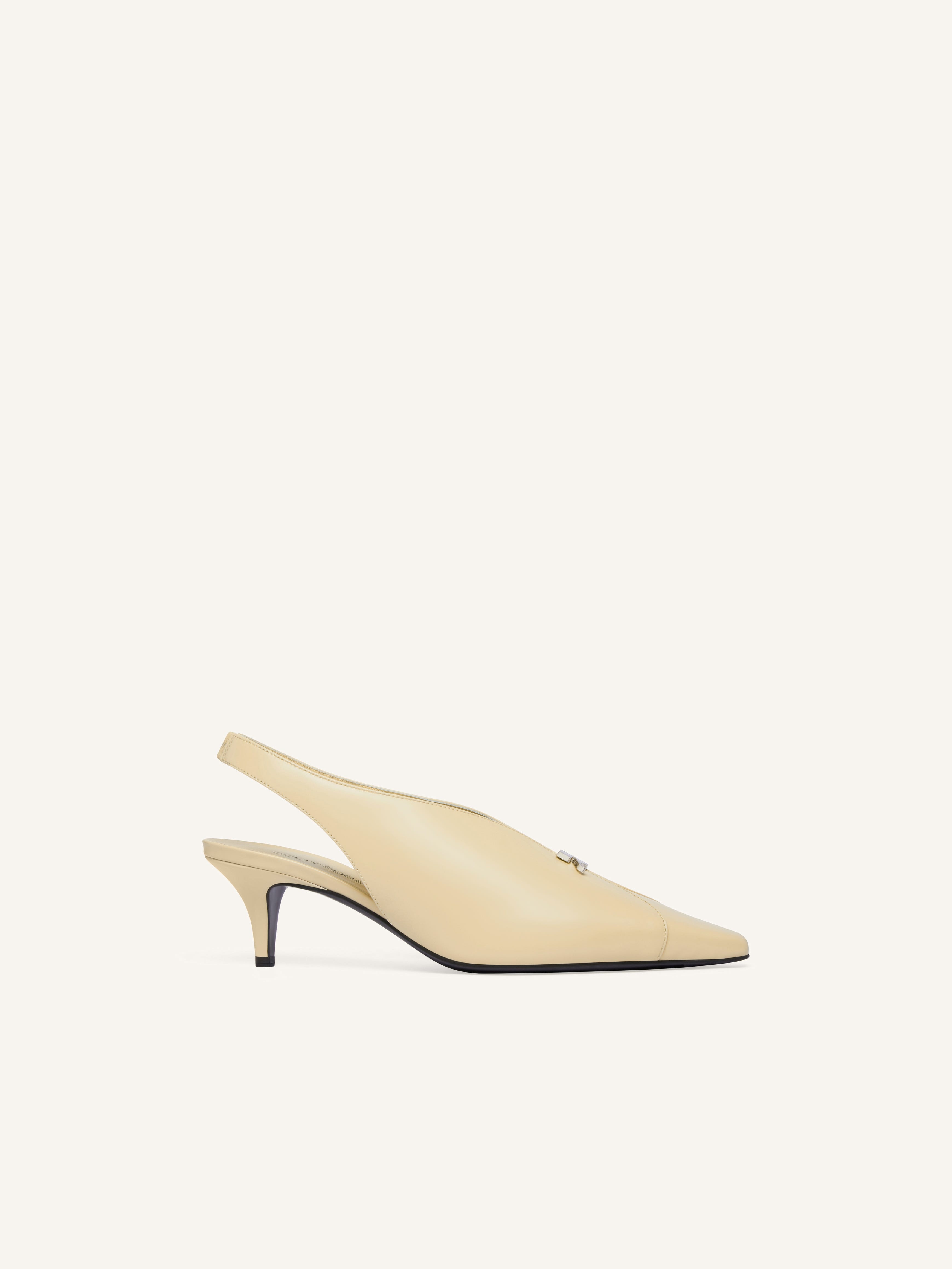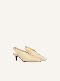Iced leather pumps with straps and elastic ankle detail. Pointed toe and silver AC logo on front. Heel: 6.5 cm DETAILS Composition: 100% calf leather Country of Manufacture: IT SKU: 324SPP015CV00332023 Color: Soft Butter