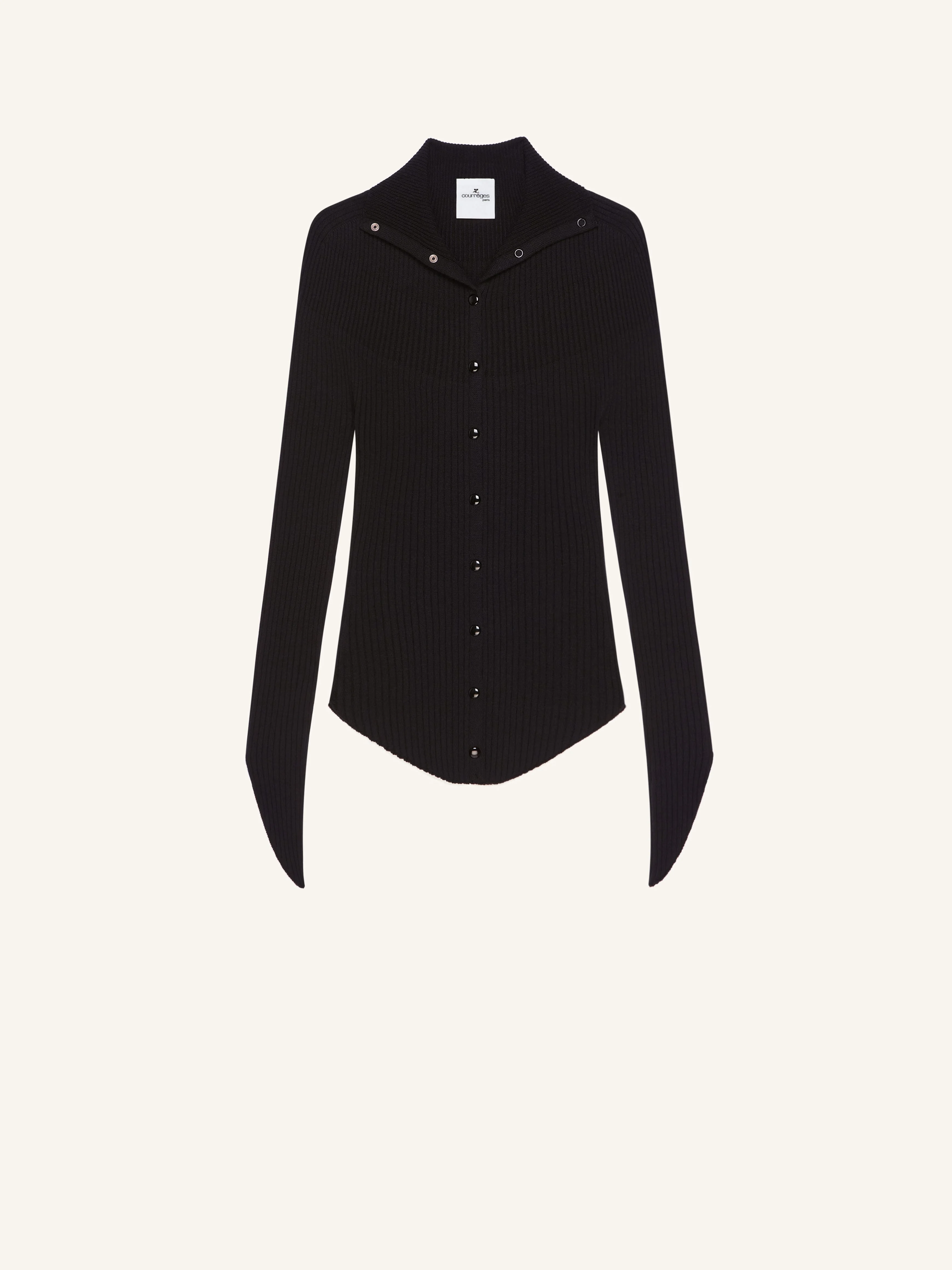 Light rib long-sleeved cardigan with oblique collar and sleeves. Embroidered AC logo on the chest. The model is 1.77m tall and wears a size S. DETAILS Composition: 80% cotton, 20% merino wool Country of Manufacture: IT SKU: 325MGI038FI00499999 Color: Black