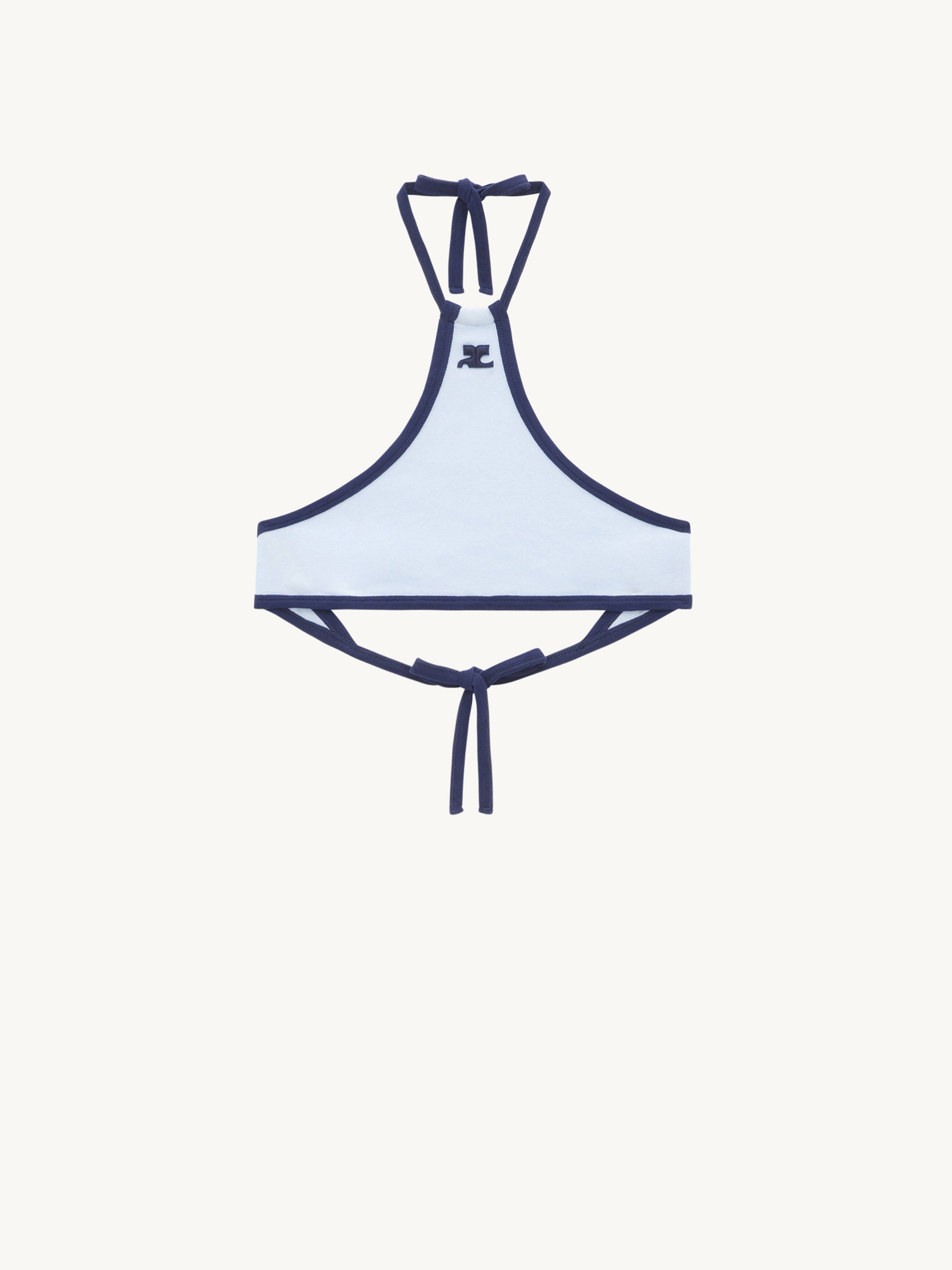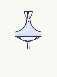Cropped jersey top with contrasting biais, triangle neckline and ties in the back. DETAILS Composition: 100% Cotton Color: Sky / Ocean Blue Country of manufacture: Portugal Item code: 123JTO144JS0070B068