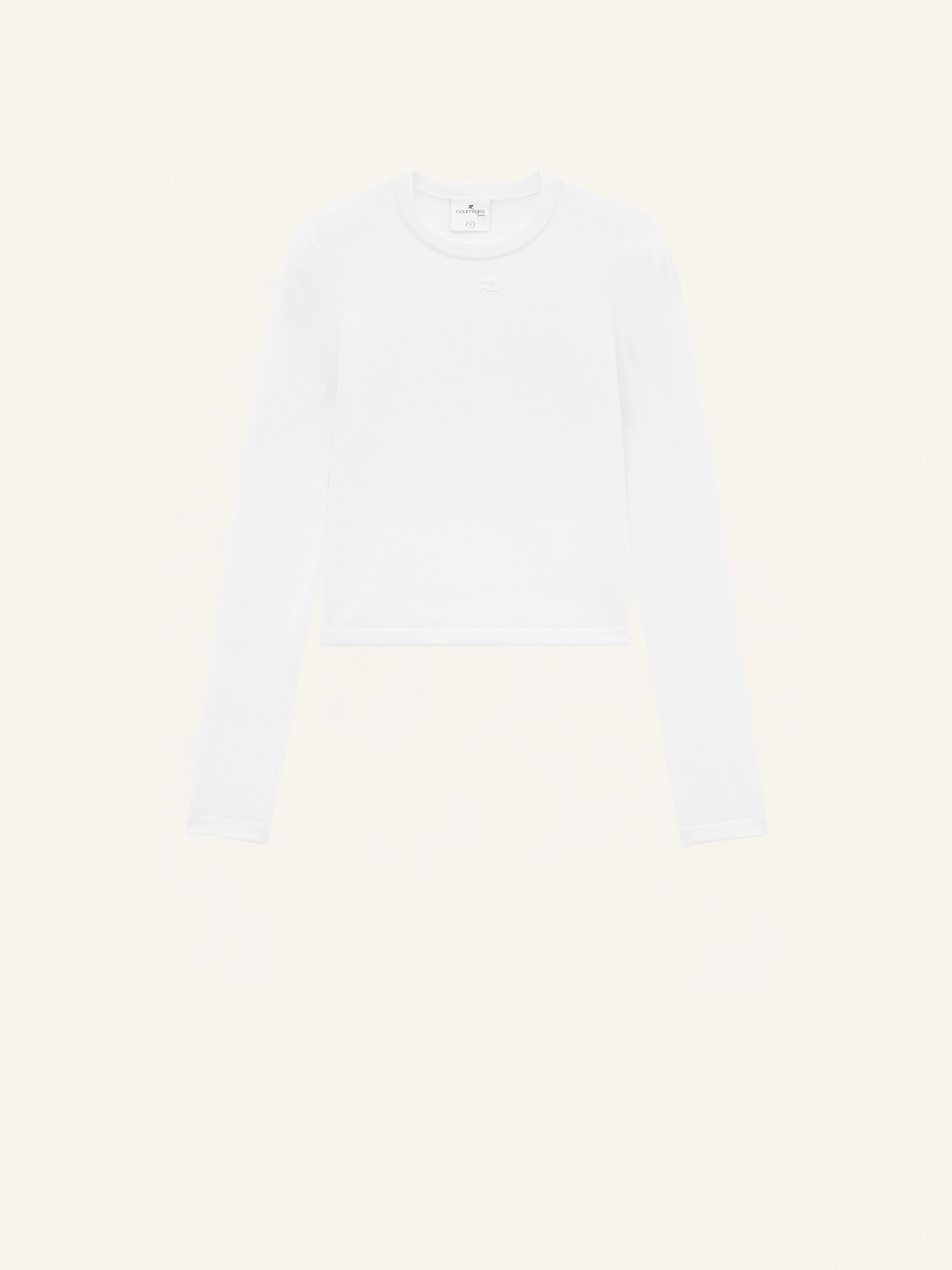 This long sleeves fitted sweater has a circular neckline. DETAILS Composition : 55% Laine Vierge, 45% Coton Pays de fabrication : Italie Couleur : Blanc Heritage Code Article : 124MPU146FI0051