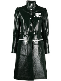 logo-appliqué vinyl trench coat