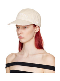 Cotton twill cap in beige. · Distressing throughout · Logo embroidered at face and side · Curved brim · Snapback fastening · Twill lining Supplier color: Oat meal Body: 100% cotton. Lining: 100% cotton. Made in Italy 241783F016002
