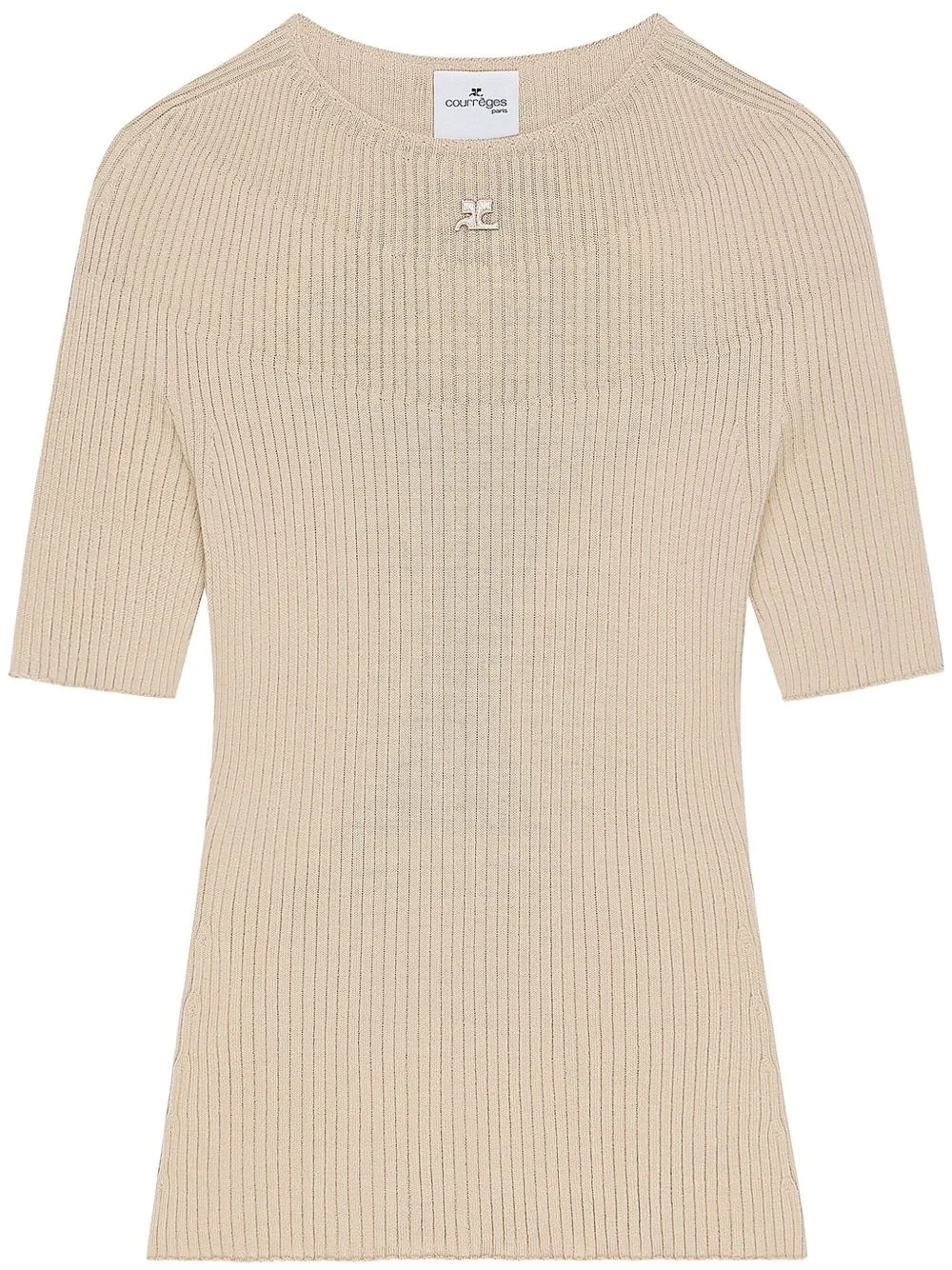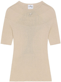 Solar knitted top Highlights - Beige - Silver-tone logo plaque - Round neck - Short sleeves Made in Italy Composition Cotton 80%, Merino 20%
