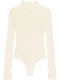 logo-embroidered ribbed bodysuit Highlights - Cream white - Cotton-wool blend - Ribbed knit - Thumb slot - Long sleeves - Logo patch to the front - Just a reminder that this piece must be tried on over your own garments. Made in Italy Composition Cotton 80%, Wool 20% Washing instructions Read Manufacturer Guidelines