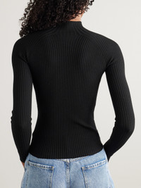 Logo-embroidered Ribbed-knit Mock-neck Top