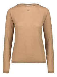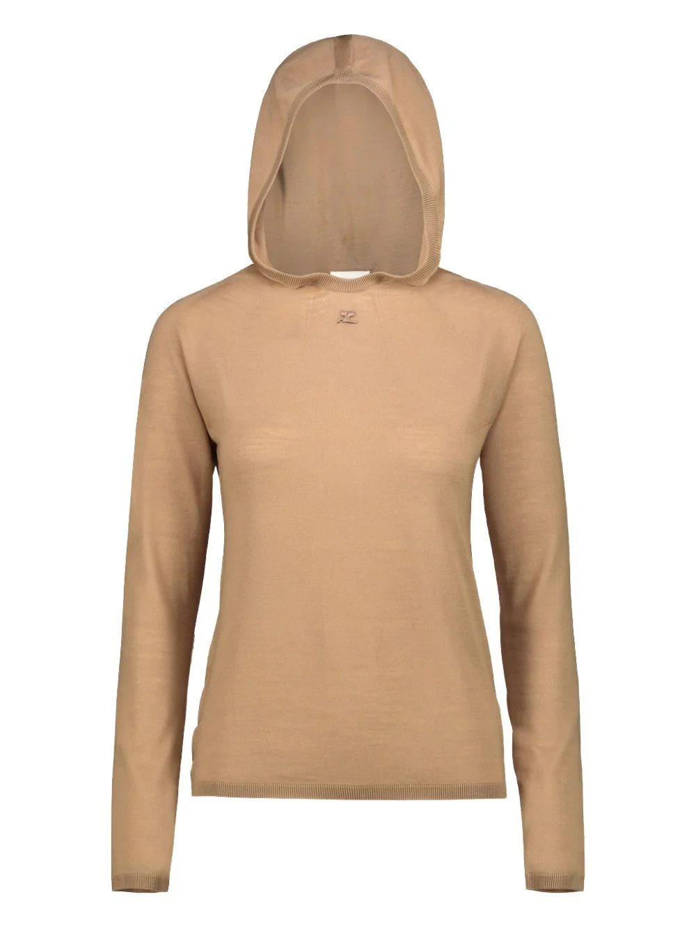 logo-embroidered wool hoodie Highlights - Beige - Wool - Hood - Logo at the centre - Long sleeves - Light knit Made in Italy Composition Wool 100% Washing instructions Read Manufacturer Guidelines