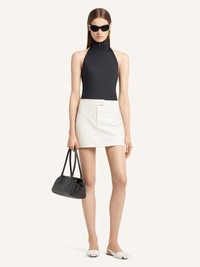 Iconic lined vinyl mini skirt with white AC logo on the front. White lacquered belt snaps and zipped fly. The model is 1.79m and wears a size 36. DETAILS Composition: 88% cotton, 10% polyurethane, 2% elastane Country of Manufacture: RS SKU: 126CJU352VY00140018 Color: Light Bones