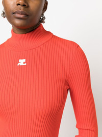 logo-patch roll neck jumper orange ribbed knit logo patch at the chest roll neck long sleeves straight hem Imported Composition Viscose 70%, Polyester 30% SIZE & FIT Model measurements Height 5 ft 11 in(1.8 m) Bust/Chest 31.49 in(80 cm) Hips 36.61 in(93 cm) Waist 24.4 in(62 cm) FittingInformation This piece fits true to size. We recommend you get your regular size Cut for a close fit Made with a mid-weight fabric Washing instructions Hand Wash